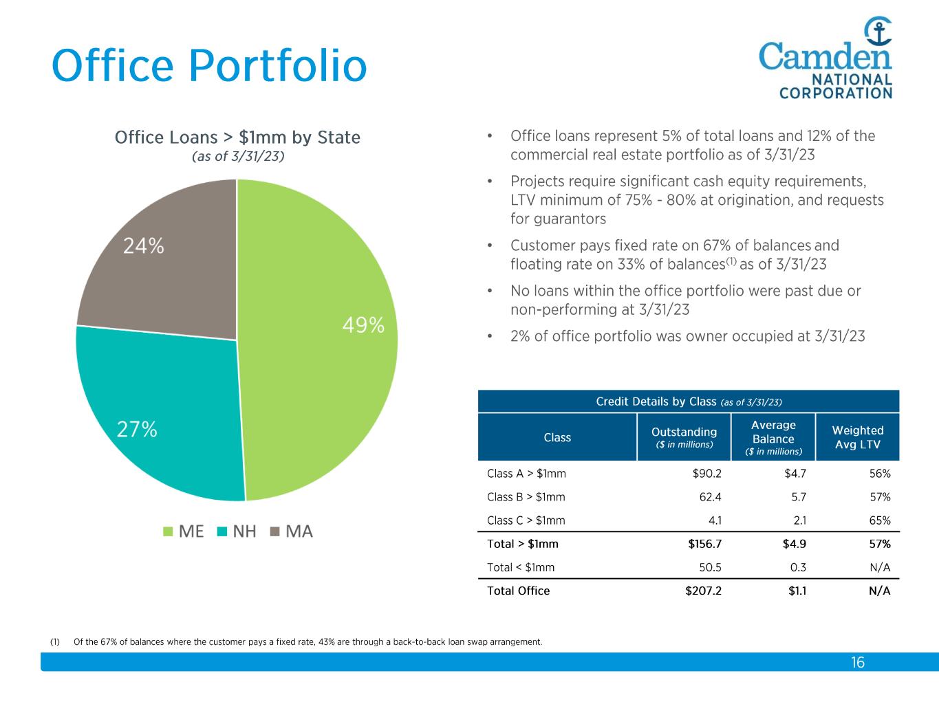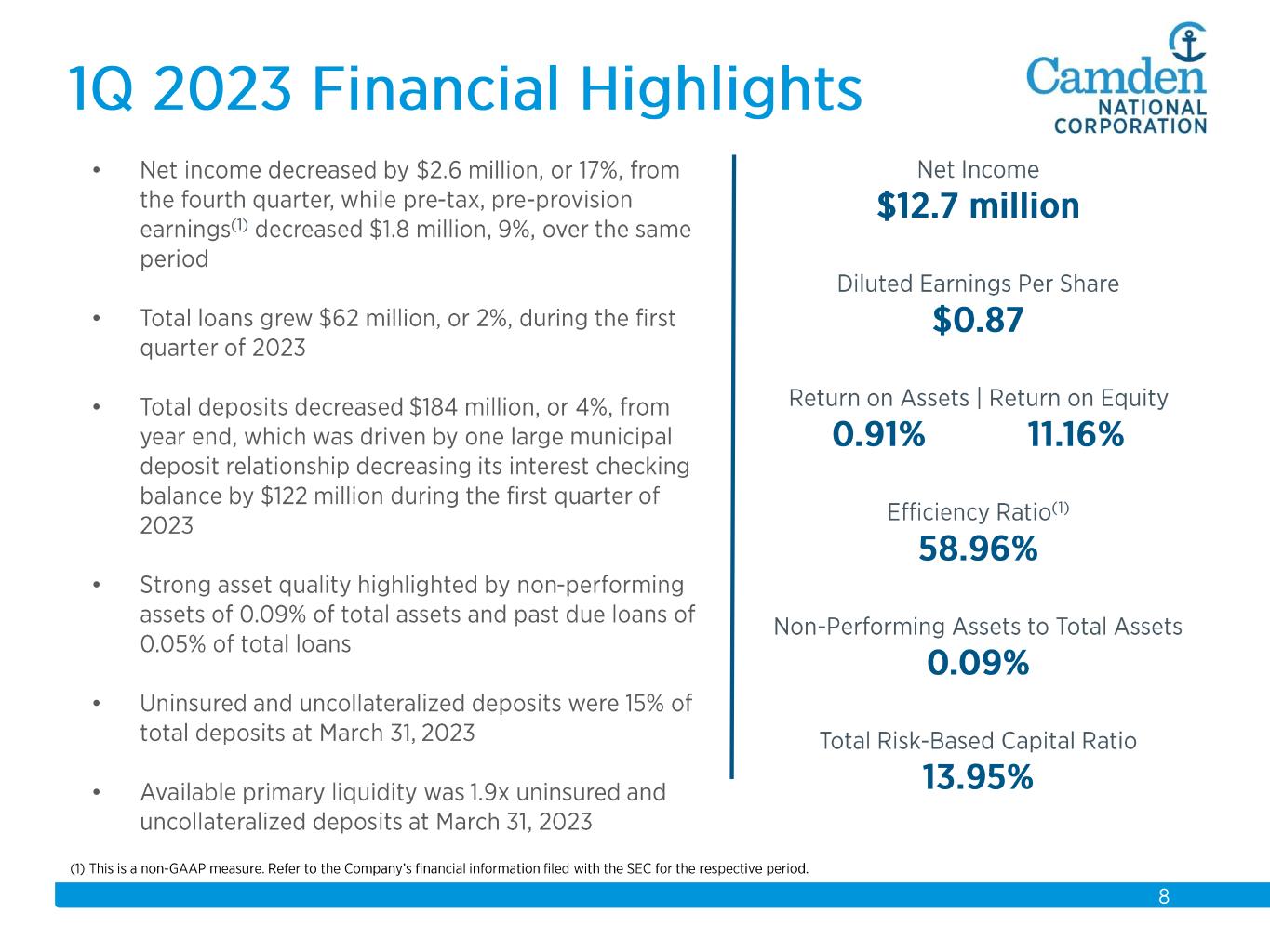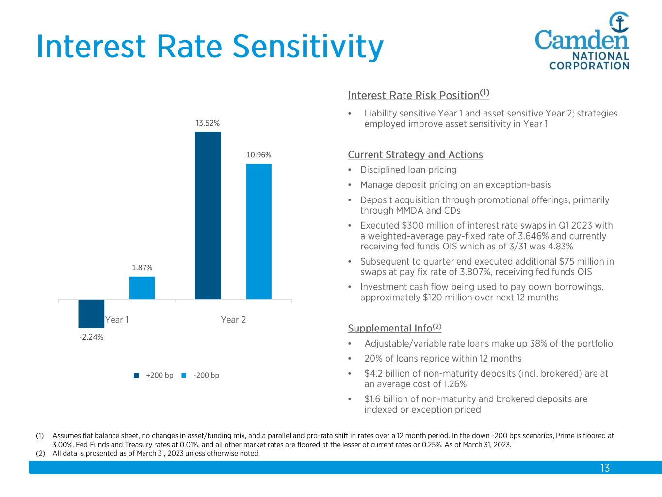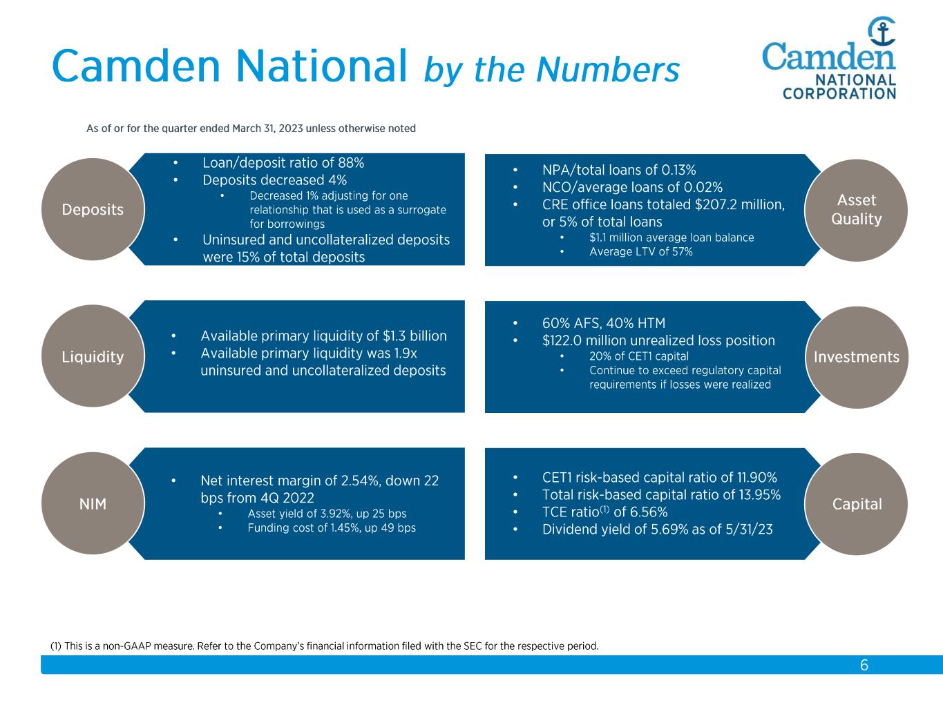 $2.3 $2.2 $2.3 $2.3 $2.6 $2.6 $2.8 $3.7 $3.9 $4.1 $4.3 $4.4 $4.9 $5.5 $5.7 2008 2009 2010 2011 2012 2013 2014 2015 2016 2017 2018 2019 2020 2021 2022 Total Assets $ in billions Acquisitions: 2008 Union Bankshares 2012 Bank of America (14 branches) 2015 The Bank of Maine Organic Growth 58% Acquisition Growth 42%