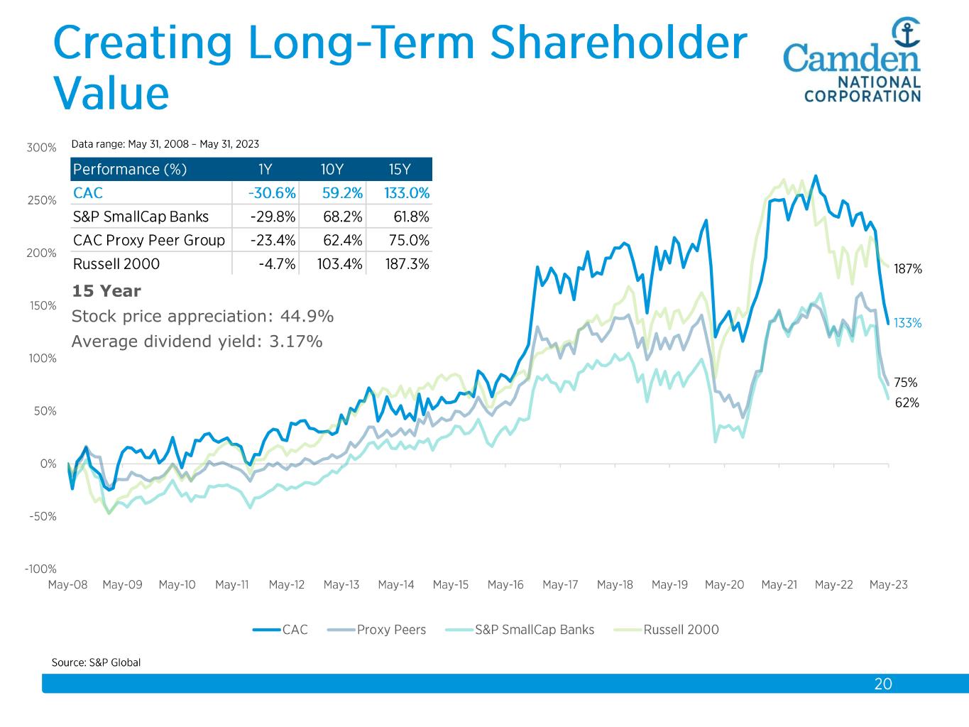 15 Year Stock price appreciation: 44.9% Average dividend yield: 3.17%