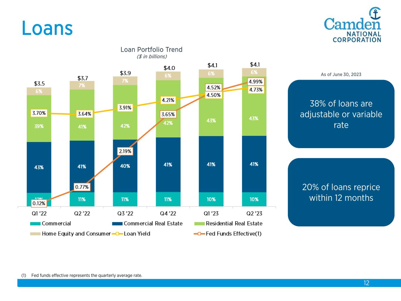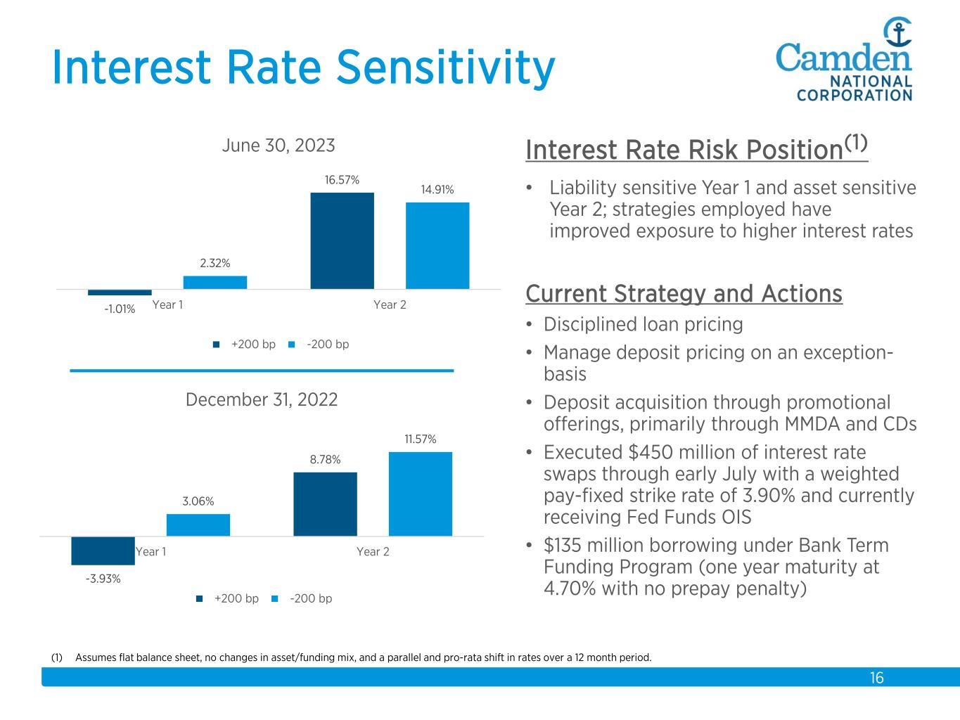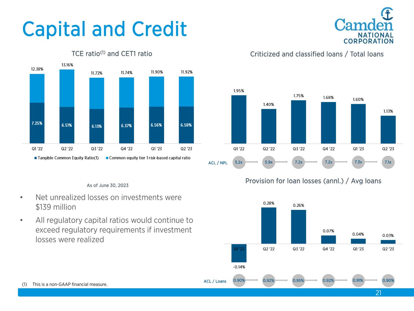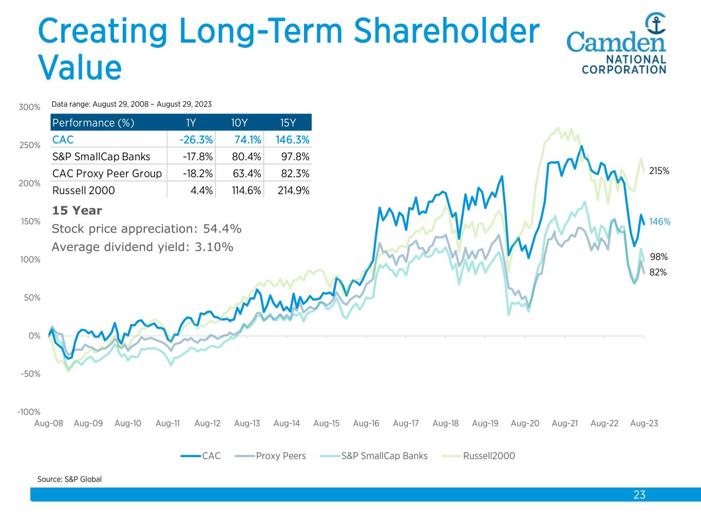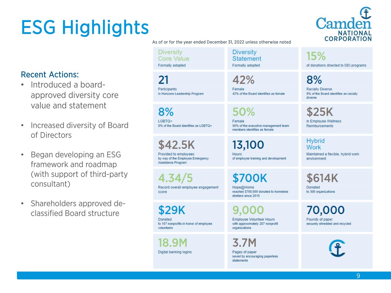 2 Forward Looking Statements 2 This presentation contains certain forward-looking statements within the meaning of the Private Securities Litigation Reform Act of 1995 and other federal securities laws, including certain plans, exceptions, goals, projections, and statements, which are subject to numerous risks, assumptions, and uncertainties. Forward-looking statements typically can be identified by the use of the words “believe,” “expect,” “anticipate,” “intend,” “estimate,” “assume,” “plan,” “target,” “potential” or “goal” or future or conditional verbs such as “will,” “may,” “might,” “should,” “could” and other expressions which predict or indicate future events or trends and which do not relate to historical matters. Forward-looking statements are not guarantees of future performance and involve risks, uncertainties and assumptions that are difficult for Camden National Corporation (the “Company”) to predict. The actual results, performance or achievements of the Company may differ materially from what is reflected in such forward-looking statements. The following factors, among others, could cause the Company’s financial performance to differ materially from the Company’s goals, plans, objectives, intentions, expectations and other forward-looking statements: (i) the impact of the COVID-19 pandemic; (ii) the impact of the war in Ukraine; (iii) weakness in the United States economy in general and the regional and local economies within the New England region and Maine, which could result in a deterioration of credit quality, an increase in the allowance for credit losses or a reduced demand for the Company’s credit or fee-based products and services; (iv) changes in trade, monetary, and fiscal policies and laws, including interest rate policies of the Board of Governors of the Federal Reserve System; (v) inflation, interest rate, market, and monetary fluctuations; (vi) ongoing competition in the labor markets and increased employee turnover; (vii) competitive pressures, including continued industry consolidation and the increased financial services provided by non-banks; (viii) deterioration in the value of the Company’s investment securities; (ix) volatility in the securities markets that could adversely affect the value or credit quality of the Company’s assets, impairment of goodwill, or the availability and terms of funding necessary to meet the Company’s liquidity needs; (x) changes in information technology and other operational risks, including cybersecurity, that require increased capital spending; (xi) changes in consumer spending and savings habits; (xii) changes in tax, banking, securities and insurance laws and regulations; (xiii) the outcome of pending and future litigation and governmental proceedings, including tax-related examinations and other matters; (xiii) changes in accounting policies, practices and standards, as may be adopted by the regulatory agencies as well as the Financial Accounting Standards Board, and other accounting standard setters; (xiv) turmoil and volatility in the financial services industry, including failures or rumors of failures of other depository institutions, which could affect the ability of depository institutions, including the Camden National, to attract and retain depositors, and could affect the ability of financial services providers, including the Company, to borrow or raise capital; (xv) actions taken by governmental agencies to stabilize the financial system and the effectiveness of such actions; (xvi) changes to regulatory capital requirements in response to recent developments affecting the banking sector; and (xvii) questions about the soundness of one or more financial institutions with which we do business. In addition, statements regarding the potential effects of the war in Ukraine, the COVID-19 pandemic and other notable national and global current events on the Company’s business, financial condition, liquidity and results of operations may constitute forward-looking statements and are subject to the risk that the actual effects may differ, possibly materially, from what is reflected in those forward-looking statements due to factors and future developments that are uncertain, unpredictable and in many cases beyond the Company's control. You should carefully review all of these risks, and be aware that there may be other factors that could cause the Company’s actual results to differ materially from those anticipated, including the risk factors listed in the Company’s filings with the SEC, including our Annual Report on Form 10-K for the year ended December 31, 2022, as updated by the Company's quarterly reports on Form 10-Q and other filings with the Securities and Exchange Commission. You should carefully review the risk factors described therein and should not place undue reliance on our forward-looking statements. These forward-looking statements were based on information, plans and estimates at the date of this presentation, and we undertake no obligation to update any forward-looking statements to reflect changes in underlying assumptions or factors, new information, future events or other changes, except to the extent required by applicable law or regulation.