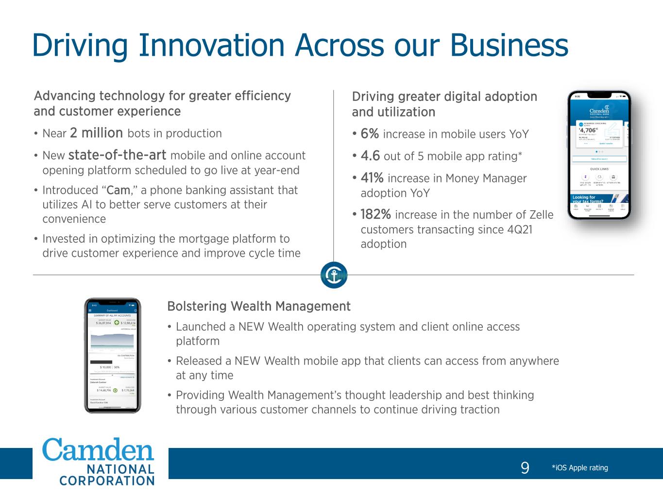 9 Advancing technology for greater efficiency and customer experience • Near 2 million bots in production • New state-of-the-art mobile and online account opening platform scheduled to go live at year-end • Introduced “Cam,” a phone banking assistant that utilizes AI to better serve customers at their convenience • Invested in optimizing the mortgage platform to drive customer experience and improve cycle time *iOS Apple rating Driving greater digital adoption and utilization • 6% increase in mobile users YoY • 4.6 out of 5 mobile app rating* • 41% increase in Money Manager adoption YoY • 182% increase in the number of Zelle customers transacting since 4Q21 adoption Driving Innovation Across our Business Bolstering Wealth Management • Launched a NEW Wealth operating system and client online access platform • Released a NEW Wealth mobile app that clients can access from anywhere at any time • Providing Wealth Management’s thought leadership and best thinking through various customer channels to continue driving traction 9