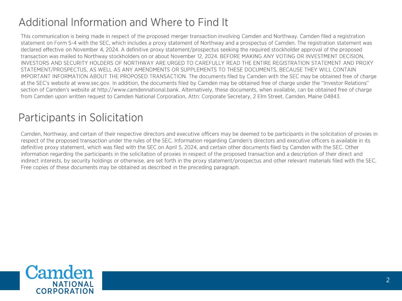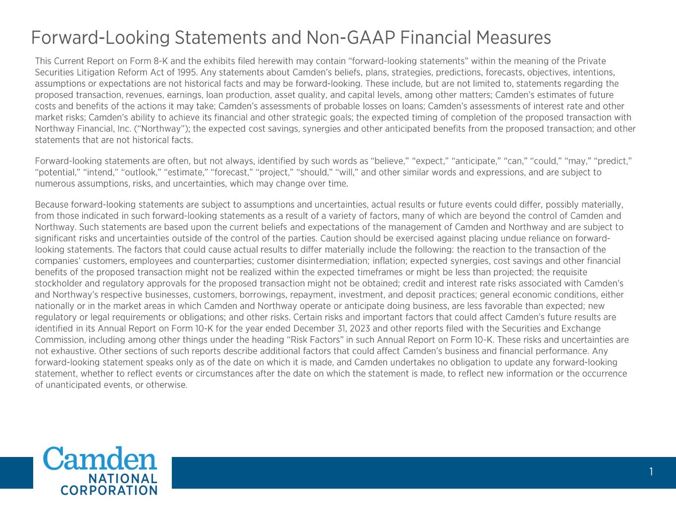 Subject to Northway shareholder and customary regulatory approvals. • • •
