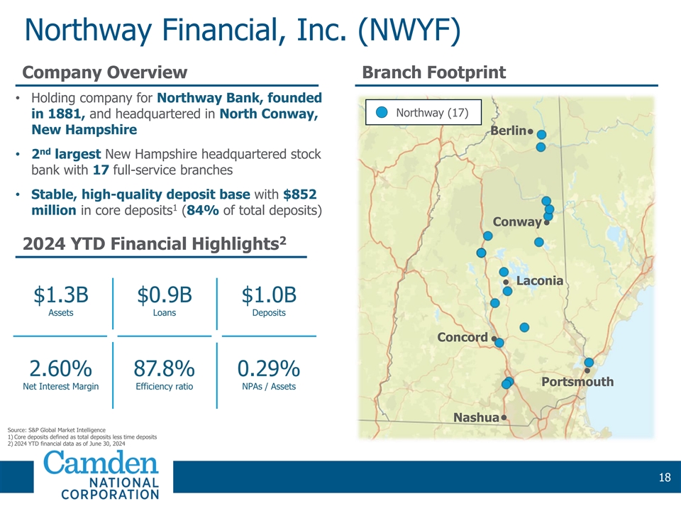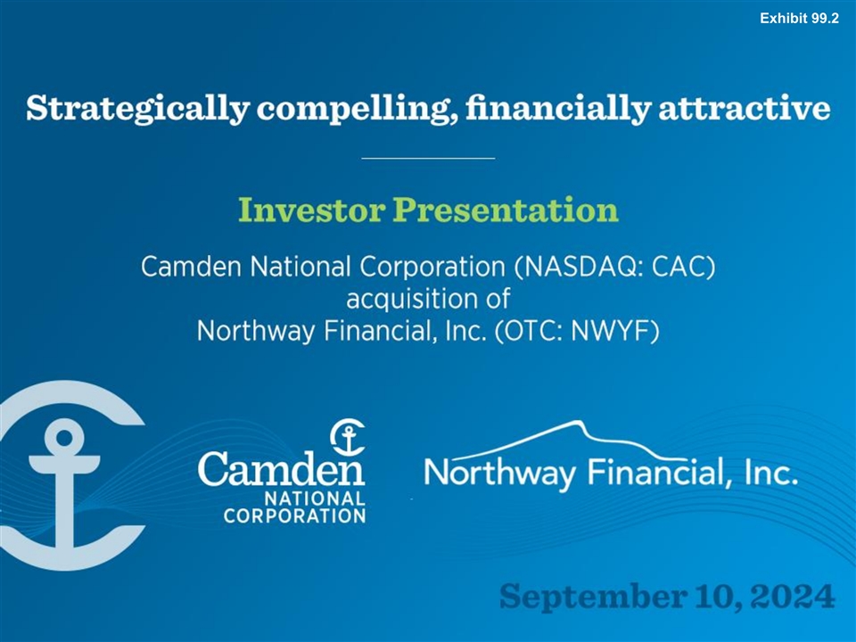 Additional Information and Participants in Solicitation Additional Information and Where to Find It This communication is being made in respect of the proposed merger transaction involving Camden and Northway. Camden intends to file a registration statement on Form S-4 with the SEC, which will include a proxy statement of Northway and a prospectus of Camden, and Camden will file other documents regarding the proposed transaction with the SEC. A definitive proxy statement/prospectus will also be sent to Northway stockholders seeking the required stockholder approval of the proposed transaction. BEFORE MAKING ANY VOTING OR INVESTMENT DECISION, INVESTORS AND SECURITY HOLDERS OF NORTHWAY ARE URGED TO CAREFULLY READ THE ENTIRE REGISTRATION STATEMENT AND PROXY STATEMENT/PROSPECTUS, WHEN THEY BECOME AVAILABLE, AS WELL AS ANY AMENDMENTS OR SUPPLEMENTS TO THESE DOCUMENTS, BECAUSE THEY WILL CONTAIN IMPORTANT INFORMATION ABOUT THE PROPOSED TRANSACTION. The documents filed by Camden with the SEC may be obtained free of charge at the SEC’s website at www.sec.gov. In addition, the documents filed by Camden may be obtained free of charge under the “Investor Relations” section of Camden’s website at http://www.camdennational.bank. Alternatively, these documents, when available, can be obtained free of charge from Camden upon written request to Camden National Corporation, Attn: Corporate Secretary, 2 Elm Street, Camden, Maine 04843. Participants in Solicitation Camden, Northway, and certain of their respective directors and executive officers may be deemed to be participants in the solicitation of proxies in respect of the proposed transaction under the rules of the SEC. Information regarding Camden’s directors and executive officers is available in its definitive proxy statement, which was filed with the SEC on April 5, 2024, and certain other documents filed by Camden with the SEC. Other information regarding the participants in the solicitation of proxies in respect of the proposed transaction and a description of their direct and indirect interests, by security holdings or otherwise, will be contained in the proxy statement/prospectus and other relevant materials to be filed with the SEC. Free copies of these documents, when available, may be obtained as described in the preceding paragraph. 3 3 3 3
