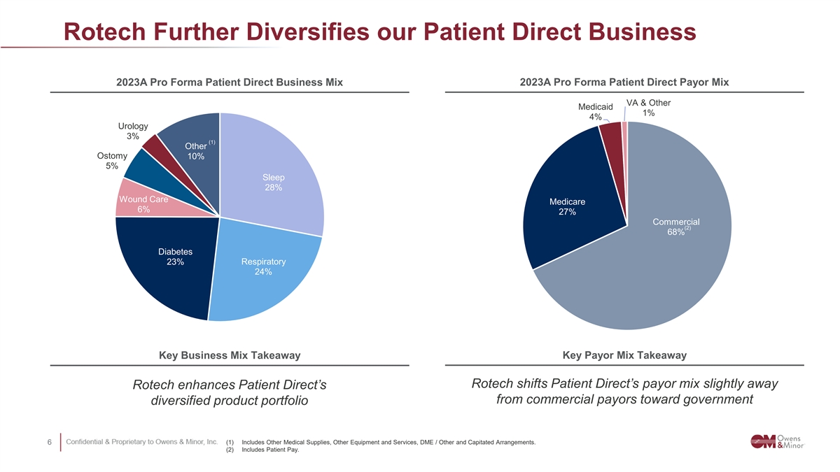 Rotech at-a-Glance Key Stats Proven Track Record § Best-in-class Home Medical Equipment distributor ~$750mm § Partner of choice for many payors, providers, suppliers and patients 2023A Net Revenue § 40+ years in operation led by a seasoned management team with 100+ years of combined experience $200mm+ Compelling Geographic Footprint 2023A Adj. EBITDA § Robust and scalable national infrastructure Above Market § Reliable national delivery across approximately 325 locations in 46 states Organic Revenue CAGR Comprehensive Product Portfolio 4,200+ § Focused on high growth end markets for patients with chronic conditions Employees § Diversified mix across patients, suppliers, payors and geographic footprint 300+ § Extensive product offerings Account Executives 5 5