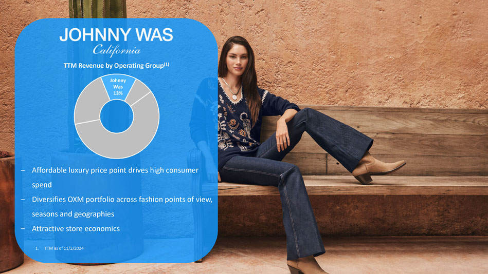 ‒ Affordable luxury price point drives high consumer spend ‒ Diversifies OXM portfolio across fashion points of view, seasons and geographies ‒ Attractive store economics TTM Revenue by Operating Group (1) 1. TTM as of 11/2/2024
