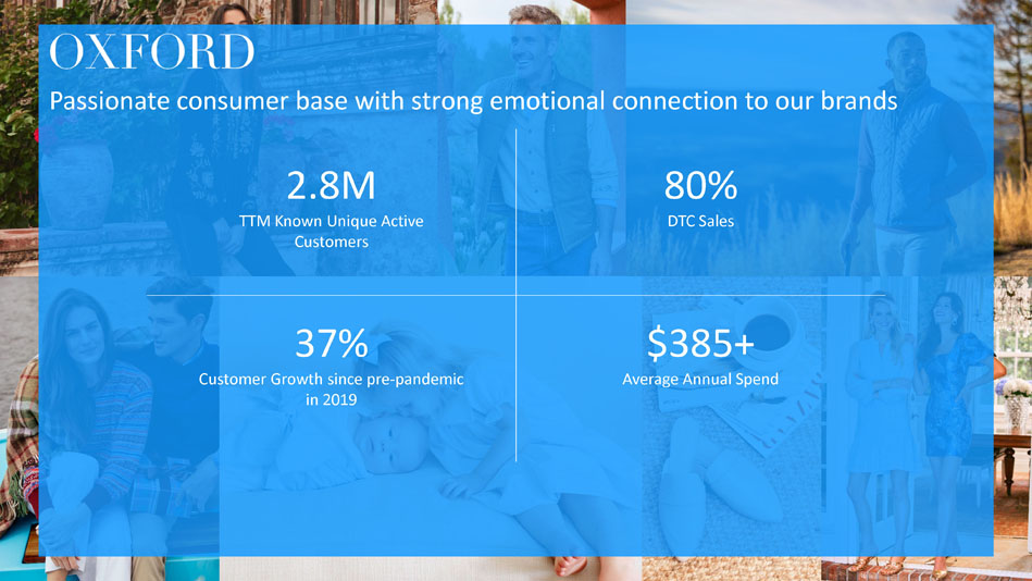 37% Customer Growth since pre - pandemic in 2019 80% DTC Sales 2.8M TTM Known Unique Active Customers $3 85+ Average Annual Spend Passionate consumer base with strong emotional connection to our brands
