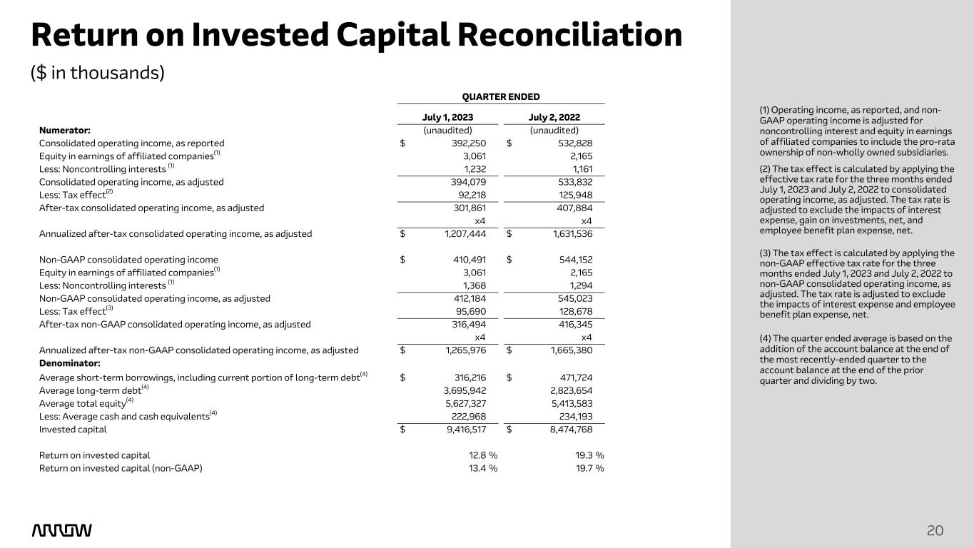 investor.arrow.com Second Quarter 2023 CFO Commentary