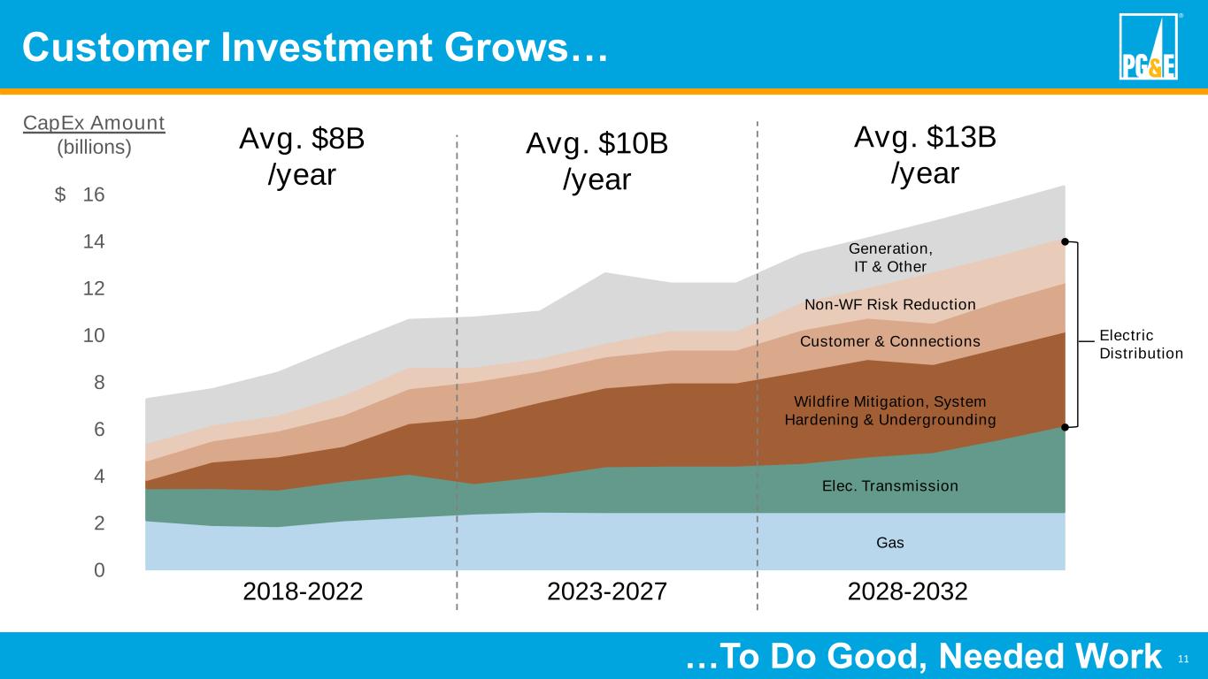 11 Customer Investment Grows… …To Do Good, Needed Work $0 $2,000 $4,000 $6,000 $8,000 $10,000 $12,000 $14,000 $16,000 CapEx Amount (billions) 2018-2022 Avg. $8B /year 2023-2027 Avg. $10B /year 2028-2032 Avg. $13B /year $ 16 14 12 10 8 6 4 2 Gas Elec. Transmission Customer & Connections Non-WF Risk Reduction Generation, IT & Other Wildfire Mitigation, System Hardening & Undergrounding Electric Distribution