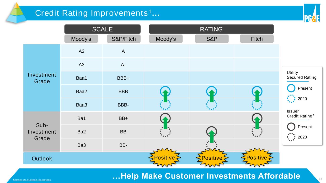 14 SCALE RATING Moody's S&P/Fitch Moody’s S&P Fitch Investment Grade A2 A A3 A- Baa1 BBB+ Baa2 BBB Baa3 BBB- Sub- Investment Grade Ba1 BB+ Ba2 BB Ba3 BB- Outlook Positive …Help Make Customer Investments Affordable Credit Rating Improvements1… Positive Positive SCALE RATING ’ S& / it ’s it Present 2020 Present 2020 Issuer Credit Rating2 Utility Secured Rating iti e Endnotes are included in the Appendix