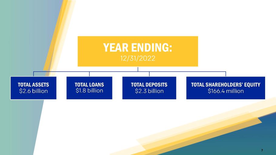 YEAR ENDING: TOTAL ASSETS TOTAL LOANS TOTAL DEPOSITS TOTAL SHAREHOLDERS’ EQUITY 7