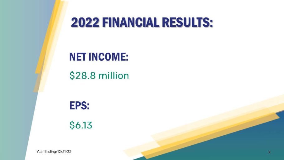 2022 FINANCIAL RESULTS: 8 NET INCOME: EPS: