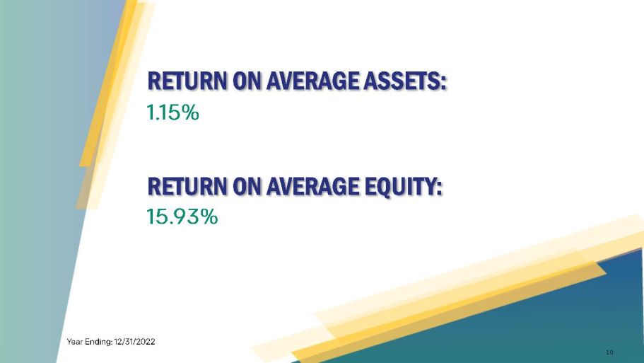 RETURN ON AVERAGE ASSETS: RETURN ON AVERAGE EQUITY: 10