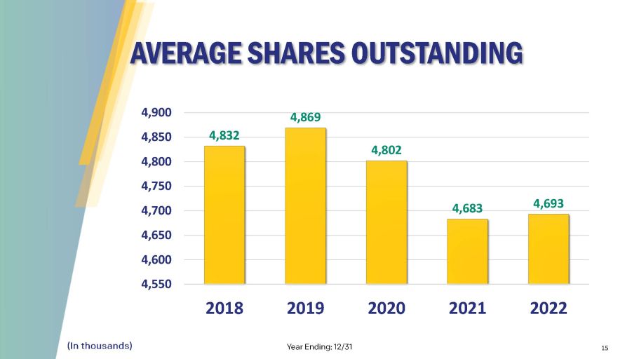 AVERAGE SHARES OUTSTANDING 4,832 4,869 4,802 4,683 4,693 4,650 4,600 4,550 4,700 4,900 4,850 4,800 4,750 2018 2019 2020 2021 2022 15