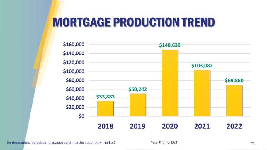 MORTGAGE PRODUCTION TREND 24 $33,883 $50,242 $148,639 $103,082 $69,860 $160,000 $140,000 $120,000 $100,000 $80,000 $60,000 $40,000 $20,000 $0 2018 2019 2020 2021 2022