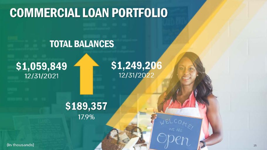 $1,249,206 $1,059,849 TOTAL BALANCES $189,357 COMMERCIAL LOAN PORTFOLIO 25