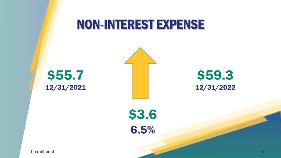 $3.6 6.5% $59.3 12/31/2022 $55.7 12/31/2021 NON - INTEREST EXPENSE 40