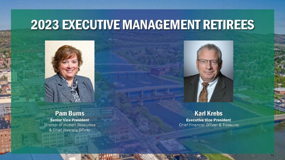 2023 EXECUTIVE MANAGEMENT RETIREES Pam Burns Senior Vice President Director of Human Resources & Chief Diversity Officer Karl Krebs Executive Vice President Chief Financial Officer & Treasurer 56