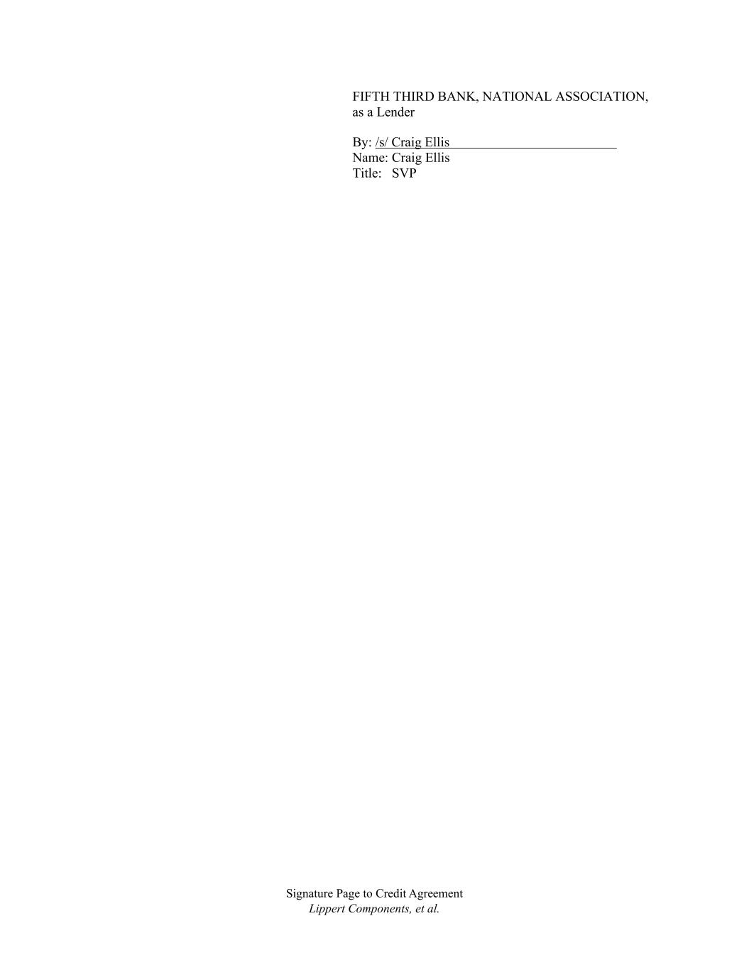 Signature Page to Credit Agreement Lippert Components, et al. FIFTH THIRD BANK, NATIONAL ASSOCIATION, as a Lender By: /s/ Craig Ellis Name: Craig Ellis Title: SVP
