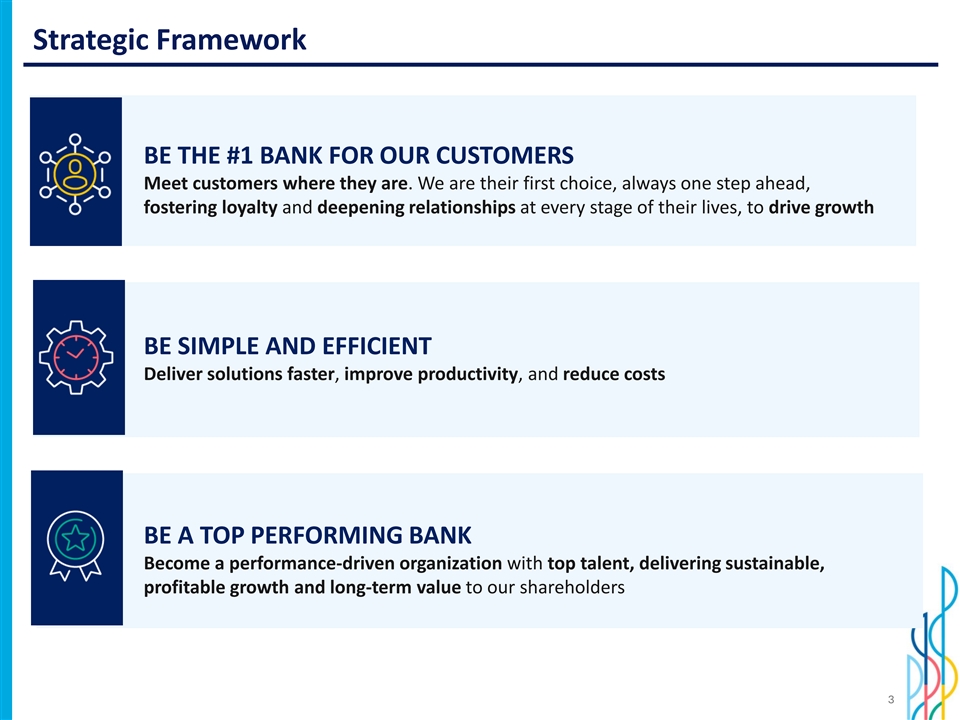Strategic Framework BE THE #1 BANK FOR OUR CUSTOMERS Meet customers where they are. We are their first choice, always one step ahead, fostering loyalty and deepening relationships at every stage of their lives, to drive growth BE SIMPLE AND EFFICIENT Deliver solutions faster, improve productivity, and reduce costs BE A TOP PERFORMING BANK Become a performance-driven organization with top talent, delivering sustainable, profitable growth and long-term value to our shareholders 3