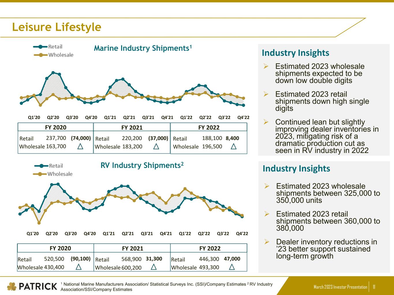March 2023 Investor Presentation 11 493,300 Leisure Lifestyle Retail Wholesale 237,700 FY 2020 163,700 1 National Marine Manufacturers Association/ Statistical Surveys Inc. (SSI)/Company Estimates 2 RV Industry Association/SSI/Company Estimates FY 2021 Marine Industry Shipments1 RV Industry Shipments2 (74,000) Retail Wholesale 220,200 183,200 Q1'20 Q2'20 Q3'20 Q4'20 Q1'21 Q2'21 Q3'21 Q4'21 Q1'22 Q2'22 Q3'22 Q4'22 Industry Insights  Estimated 2023 wholesale shipments expected to be down low double digits  Estimated 2023 retail shipments down high single digits  Continued lean but slightly improving dealer inventories in 2023, mitigating risk of a dramatic production cut as seen in RV industry in 2022 Industry Insights  Estimated 2023 wholesale shipments between 325,000 to 350,000 units  Estimated 2023 retail shipments between 360,000 to 380,000  Dealer inventory reductions in ’23 better support sustained long-term growth FY 2022 Retail Wholesale 188,100 196,500 Q1'20 Q2'20 Q3'20 Q4'20 Q1'21 Q2'21 Q3'21 Q4'21 Q1'22 Q2'22 Q3'22 Q4'22 Retail Wholesale 520,500 FY 2020 430,400 FY 2021 Retail Wholesale 568,900 600,200 FY 2022 Retail Wholesale 446,300 (37,000) 8,400 (90,100) 31,300 47,000