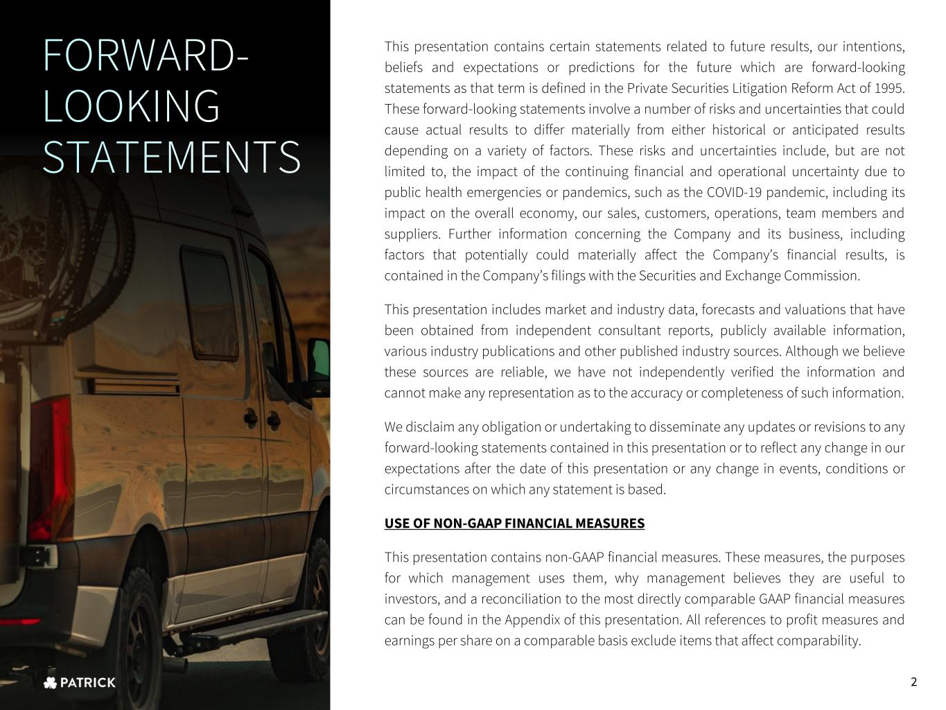 This presentation contains certain statements related to future results, our intentions, beliefs and expectations or predictions for the future which are forward-looking statements as that term is defined in the Private Securities Litigation Reform Act of 1995. These forward-looking statements involve a number of risks and uncertainties that could cause actual results to differ materially from either historical or anticipated results depending on a variety of factors. These risks and uncertainties include, but are not limited to, the impact of the continuing financial and operational uncertainty due to public health emergencies or pandemics, such as the COVID-19 pandemic, including its impact on the overall economy, our sales, customers, operations, team members and suppliers. Further information concerning the Company and its business, including factors that potentially could materially affect the Company’s financial results, is contained in the Company’s filings with the Securities and Exchange Commission. This presentation includes market and industry data, forecasts and valuations that have been obtained from independent consultant reports, publicly available information, various industry publications and other published industry sources. Although we believe these sources are reliable, we have not independently verified the information and cannot make any representation as to the accuracy or completeness of such information. We disclaim any obligation or undertaking to disseminate any updates or revisions to any forward-looking statements contained in this presentation or to reflect any change in our expectations after the date of this presentation or any change in events, conditions or circumstances on which any statement is based. USE OF NON-GAAP FINANCIAL MEASURES This presentation contains non-GAAP financial measures. These measures, the purposes for which management uses them, why management believes they are useful to investors, and a reconciliation to the most directly comparable GAAP financial measures can be found in the Appendix of this presentation. All references to profit measures and earnings per share on a comparable basis exclude items that affect comparability. 2
