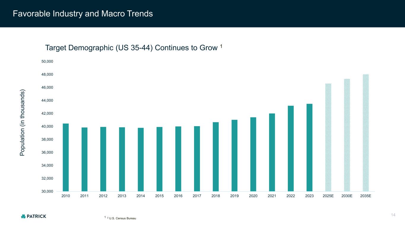 Favorable Industry and Macro Trends 1 2 U.S. Census Bureau Target Demographic (US 35-44) Continues to Grow 1 Po pu la tio n (in th ou sa nd s) 30,000 32,000 34,000 36,000 38,000 40,000 42,000 44,000 46,000 48,000 50,000 2010 2011 2012 2013 2014 2015 2016 2017 2018 2019 2020 2021 2022 2023 2025E 2030E 2035E 14