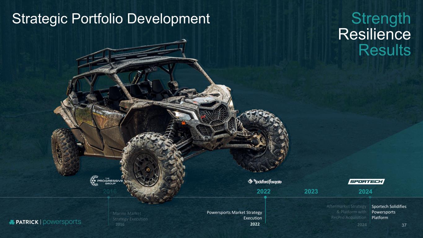 Strength Resilience Results 2022 2024 Strategic Portfolio Development 2022 Powersports Market Strategy Execution 2023 37 Sportech Solidifies Powersports Platform