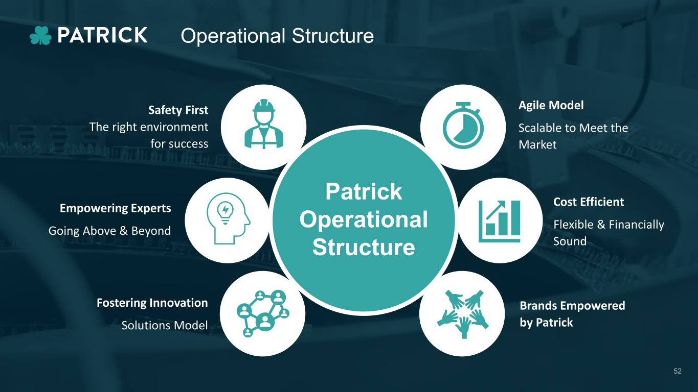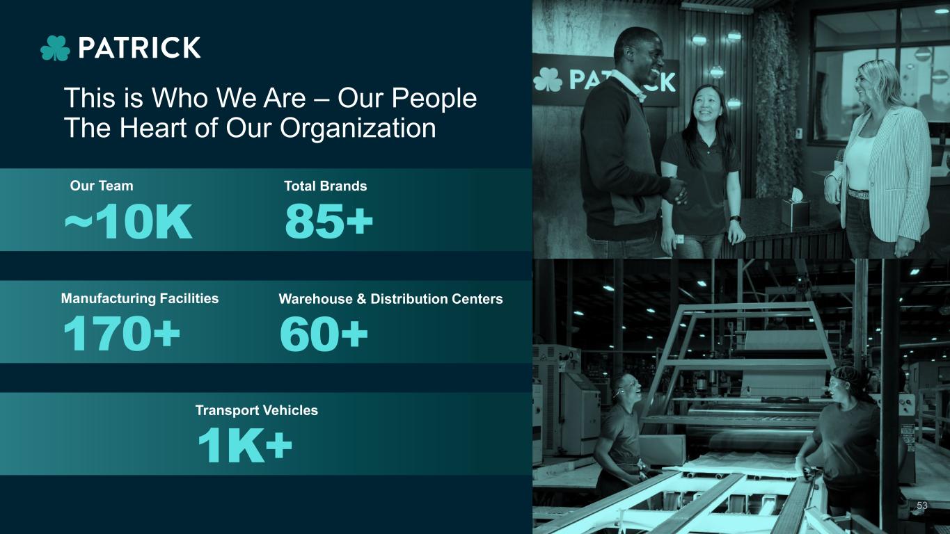 Safety First The right environment for success Empowering Experts Going Above & Beyond Fostering Innovation Solutions Model Agile Model Scalable to Meet the Market Cost Efficient Flexible & Financially Sound Brands Empowered by Patrick Patrick Operational Structure Operational Structure 52