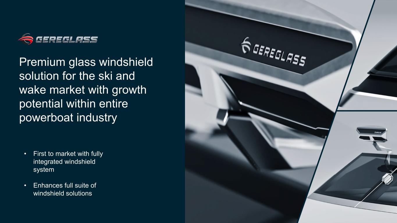 65 Premium glass windshield solution for the ski and wake market with growth potential within entire powerboat industry • First to market with fully integrated windshield system • Enhances full suite of windshield solutions