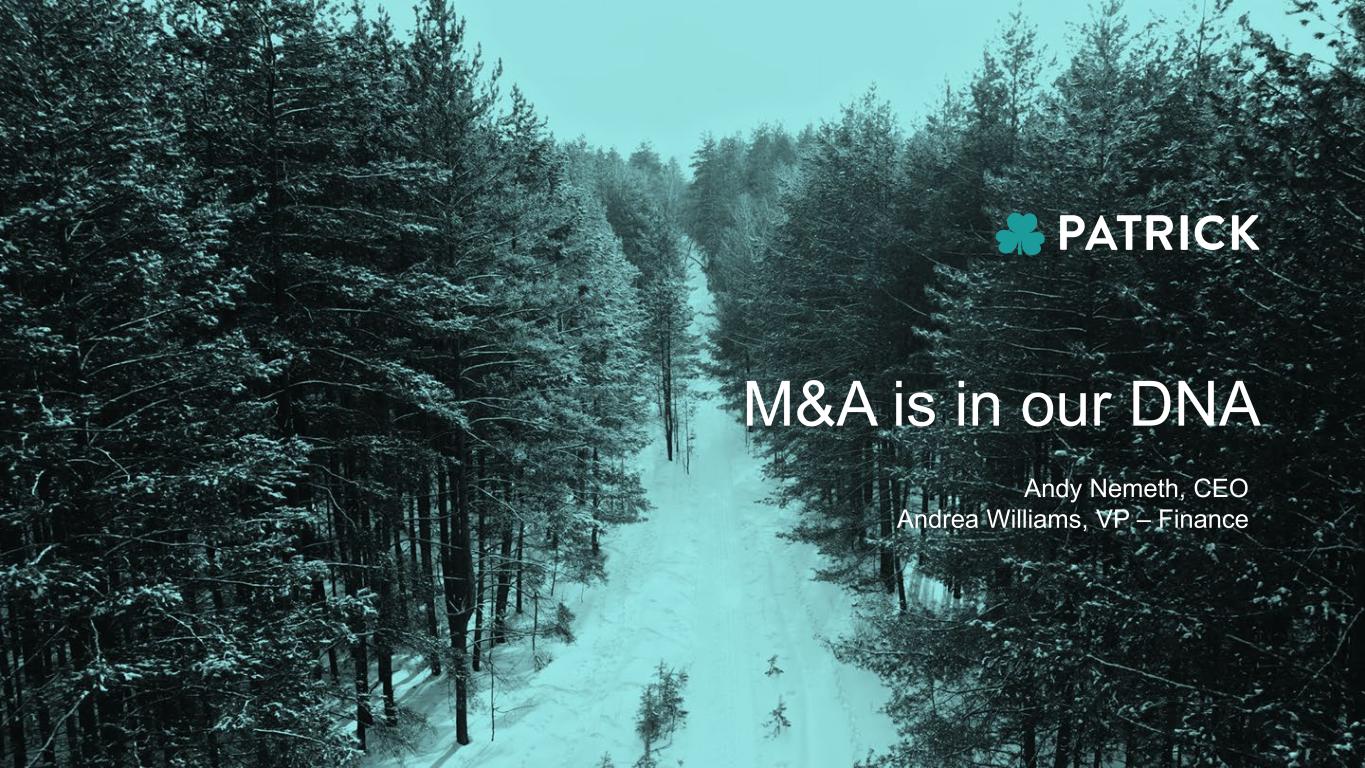 M&A is in our DNA Andy Nemeth, CEO Andrea Williams, VP – Finance