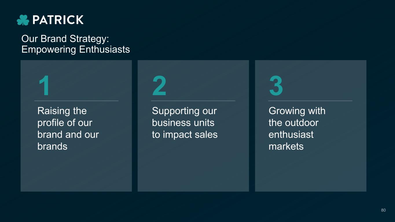 1 Raising the profile of our brand and our brands Supporting our business units to impact sales 2 3 Growing with the outdoor enthusiast markets Our Brand Strategy: Empowering Enthusiasts 80