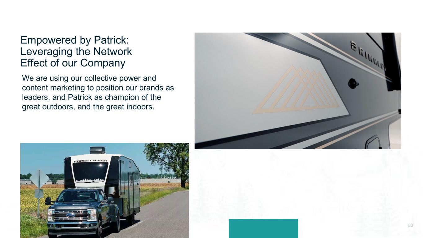 We are using our collective power and content marketing to position our brands as leaders, and Patrick as champion of the great outdoors, and the great indoors. Empowered by Patrick: Leveraging the Network Effect of our Company 83