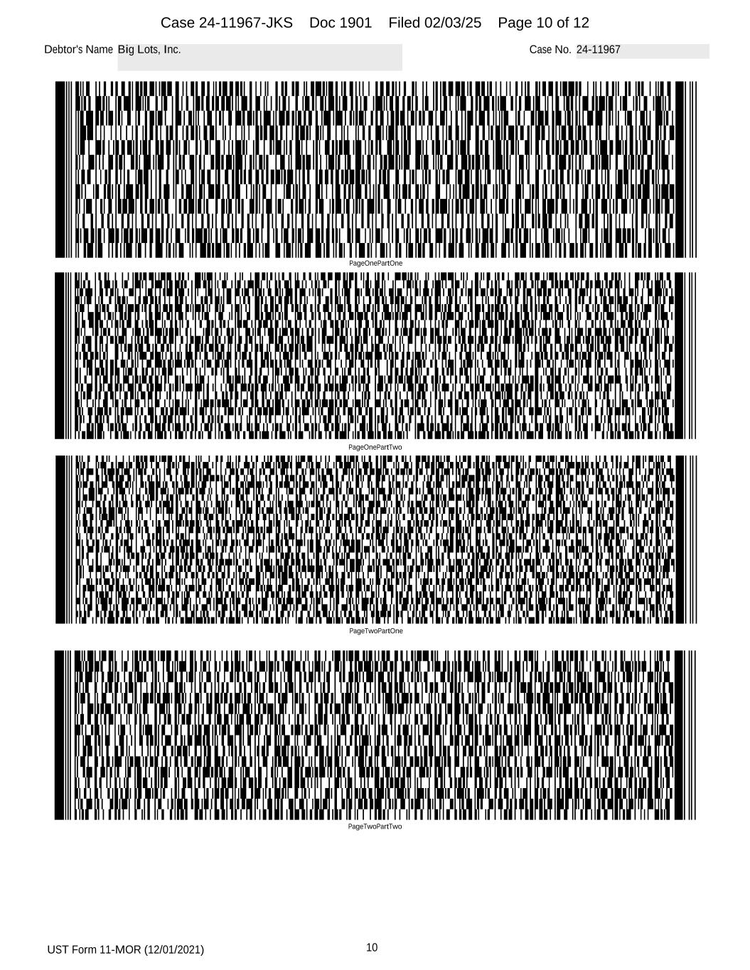 UST Form 11-MOR (12/01/2021) 10 Debtor's Name Big Lots, Inc. Case No. 24-11967 PageOnePartOne PageOnePartTwo PageTwoPartOne PageTwoPartTwo Case 24-11967-JKS Doc 1901 Filed 02/03/25 Page 10 of 12