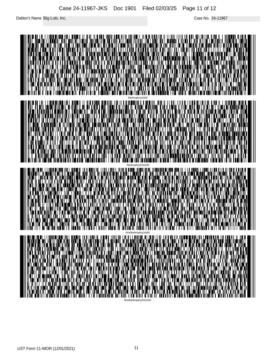UST Form 11-MOR (12/01/2021) 11 Debtor's Name Big Lots, Inc. Case No. 24-11967 Bankruptcy51to100 NonBankruptcy1to50 NonBankruptcy51to100 Bankruptcy1to50 Case 24-11967-JKS Doc 1901 Filed 02/03/25 Page 11 of 12