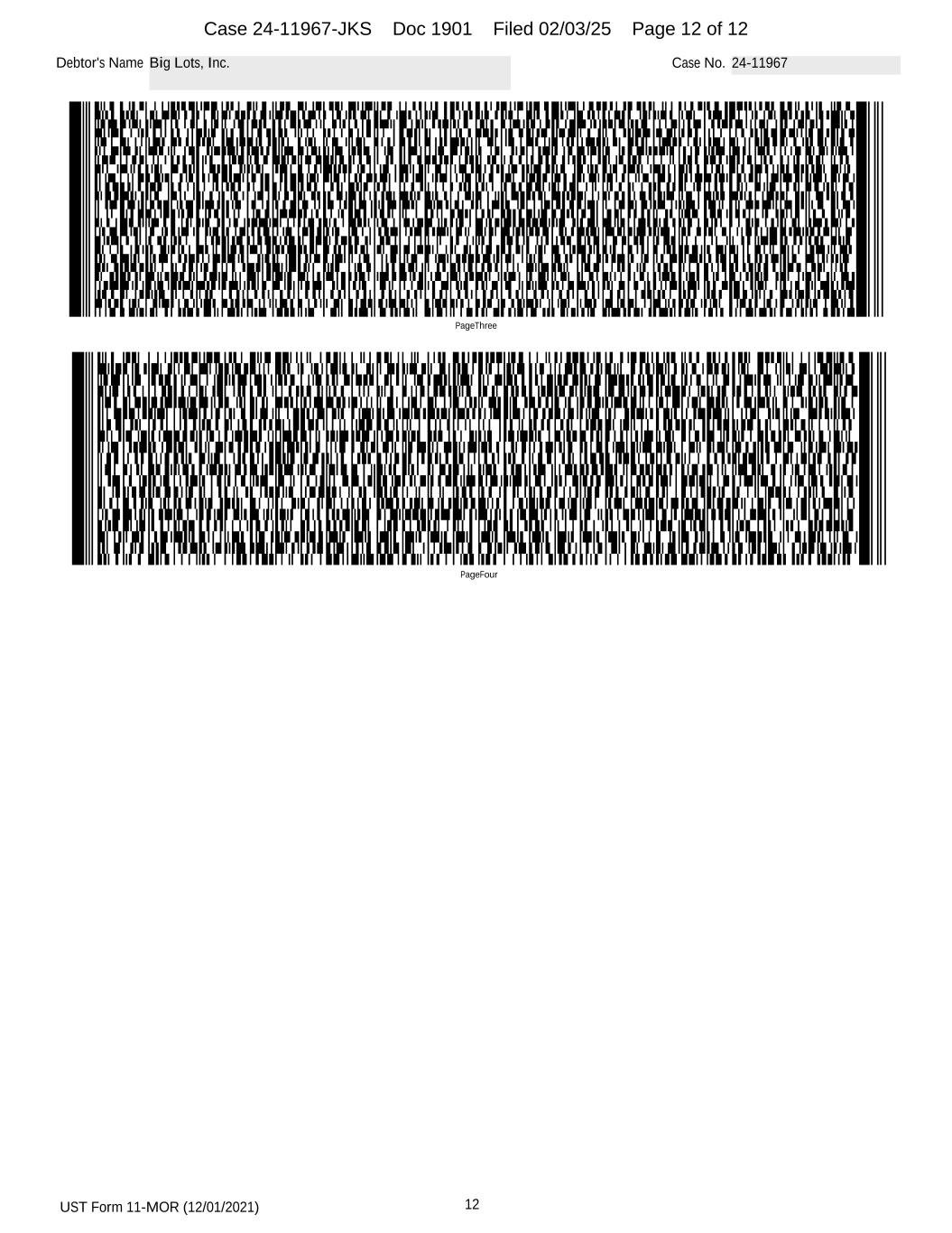 UST Form 11-MOR (12/01/2021) 12 Debtor's Name Big Lots, Inc. Case No. 24-11967 PageFour PageThree Case 24-11967-JKS Doc 1901 Filed 02/03/25 Page 12 of 12