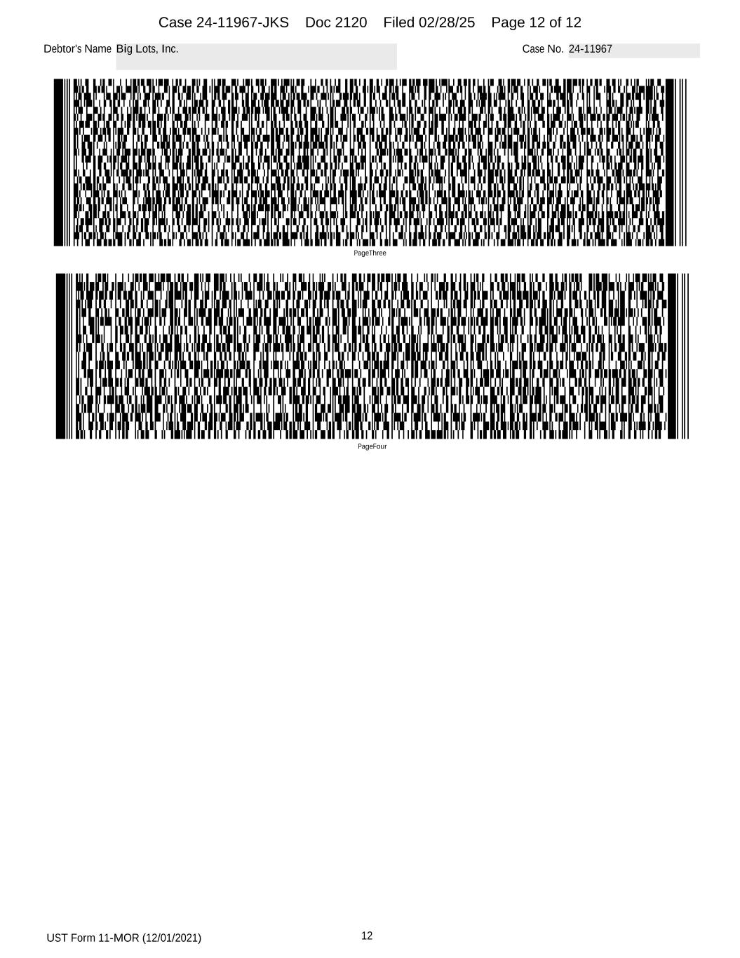 UST Form 11-MOR (12/01/2021) 12 Debtor's Name Big Lots, Inc. Case No. 24-11967 PageFour PageThree Case 24-11967-JKS Doc 2120 Filed 02/28/25 Page 12 of 12