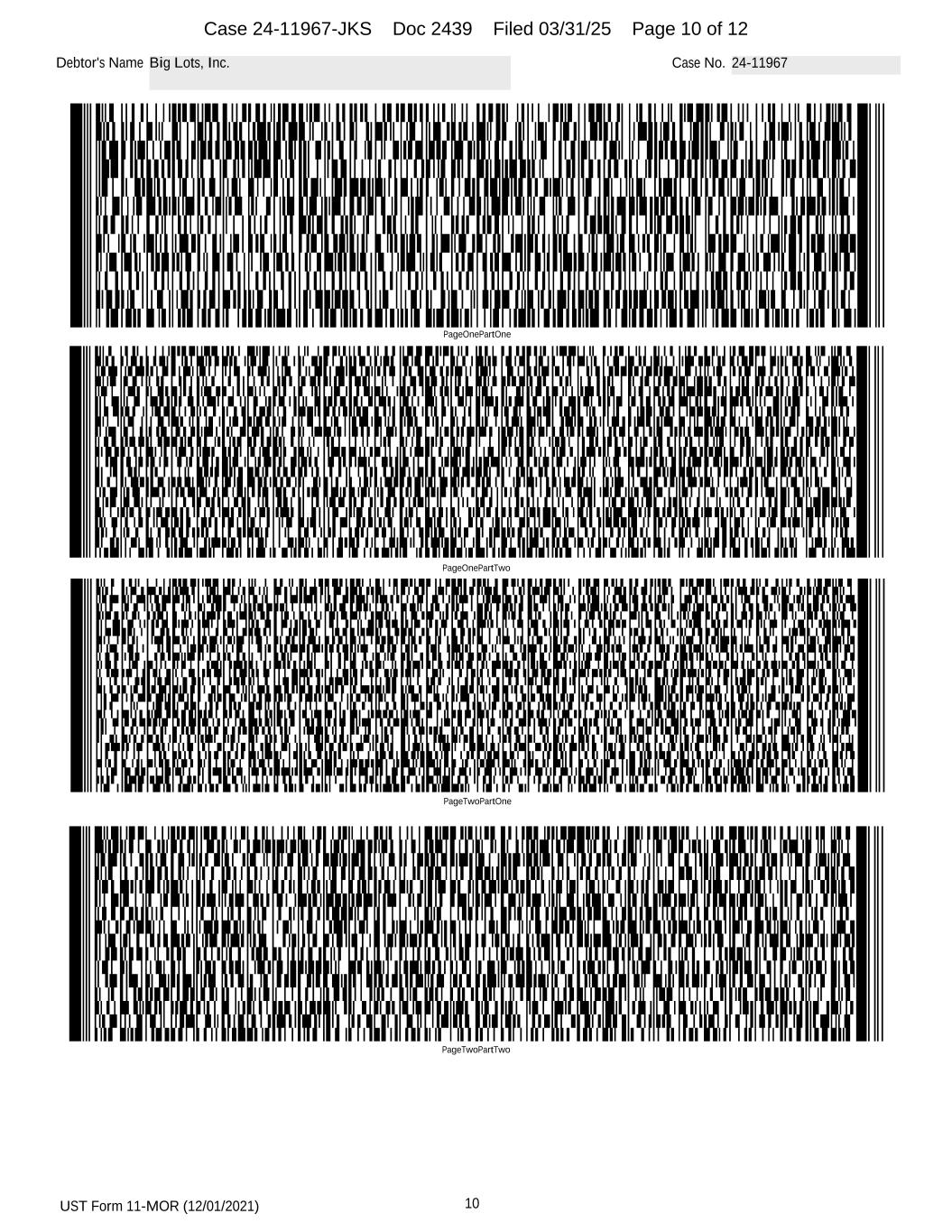 UST Form 11-MOR (12/01/2021) 10 Debtor's Name Big Lots, Inc. Case No. 24-11967 PageOnePartOne PageOnePartTwo PageTwoPartOne PageTwoPartTwo Case 24-11967-JKS Doc 2439 Filed 03/31/25 Page 10 of 12
