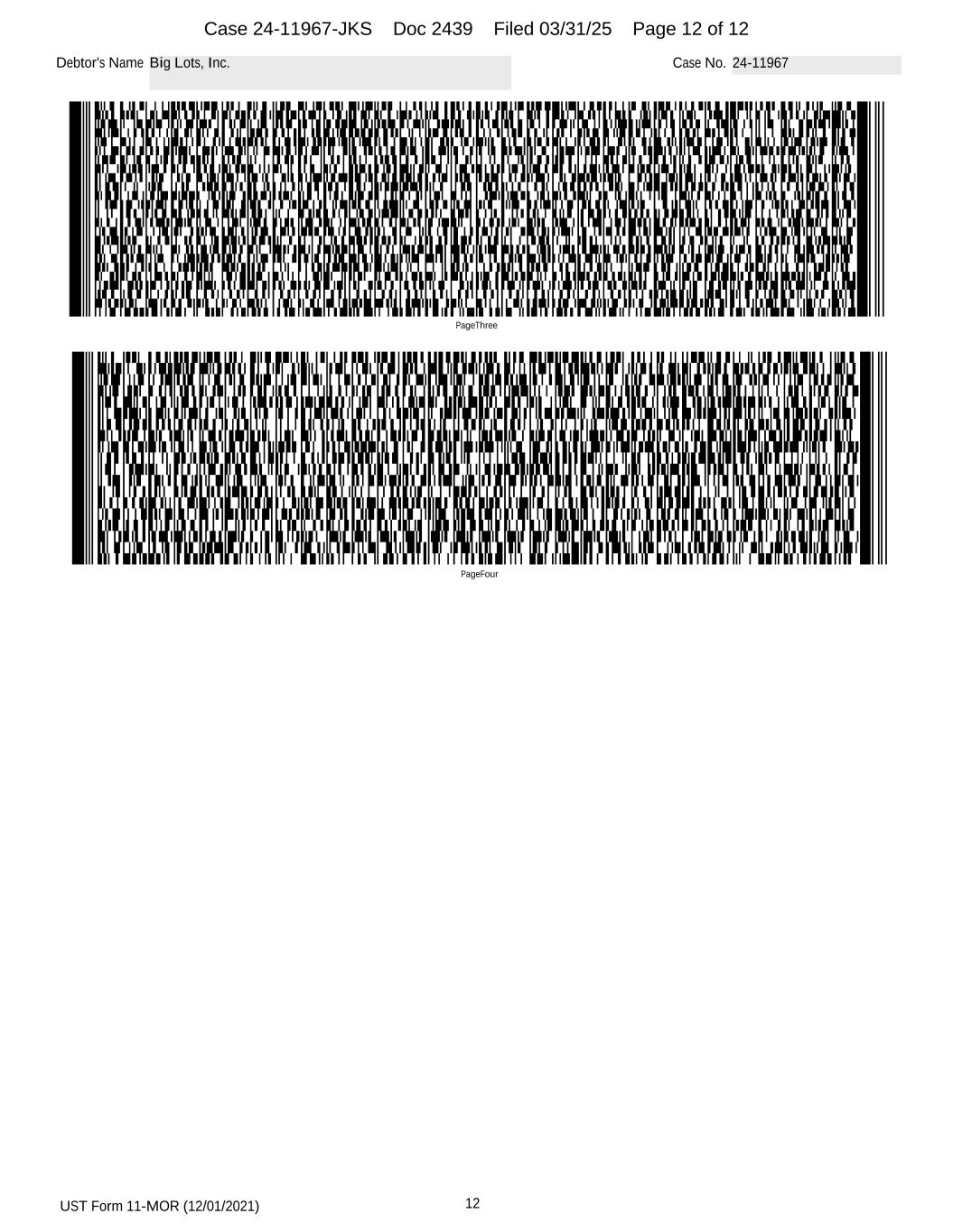 UST Form 11-MOR (12/01/2021) 12 Debtor's Name Big Lots, Inc. Case No. 24-11967 PageFour PageThree Case 24-11967-JKS Doc 2439 Filed 03/31/25 Page 12 of 12