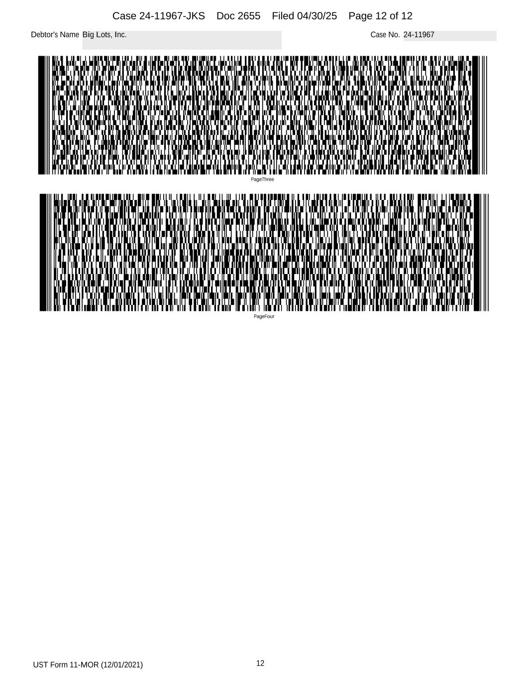 UST Form 11-MOR (12/01/2021) 12 Debtor's Name Big Lots, Inc. Case No. 24-11967 PageFour PageThree Case 24-11967-JKS Doc 2655 Filed 04/30/25 Page 12 of 12