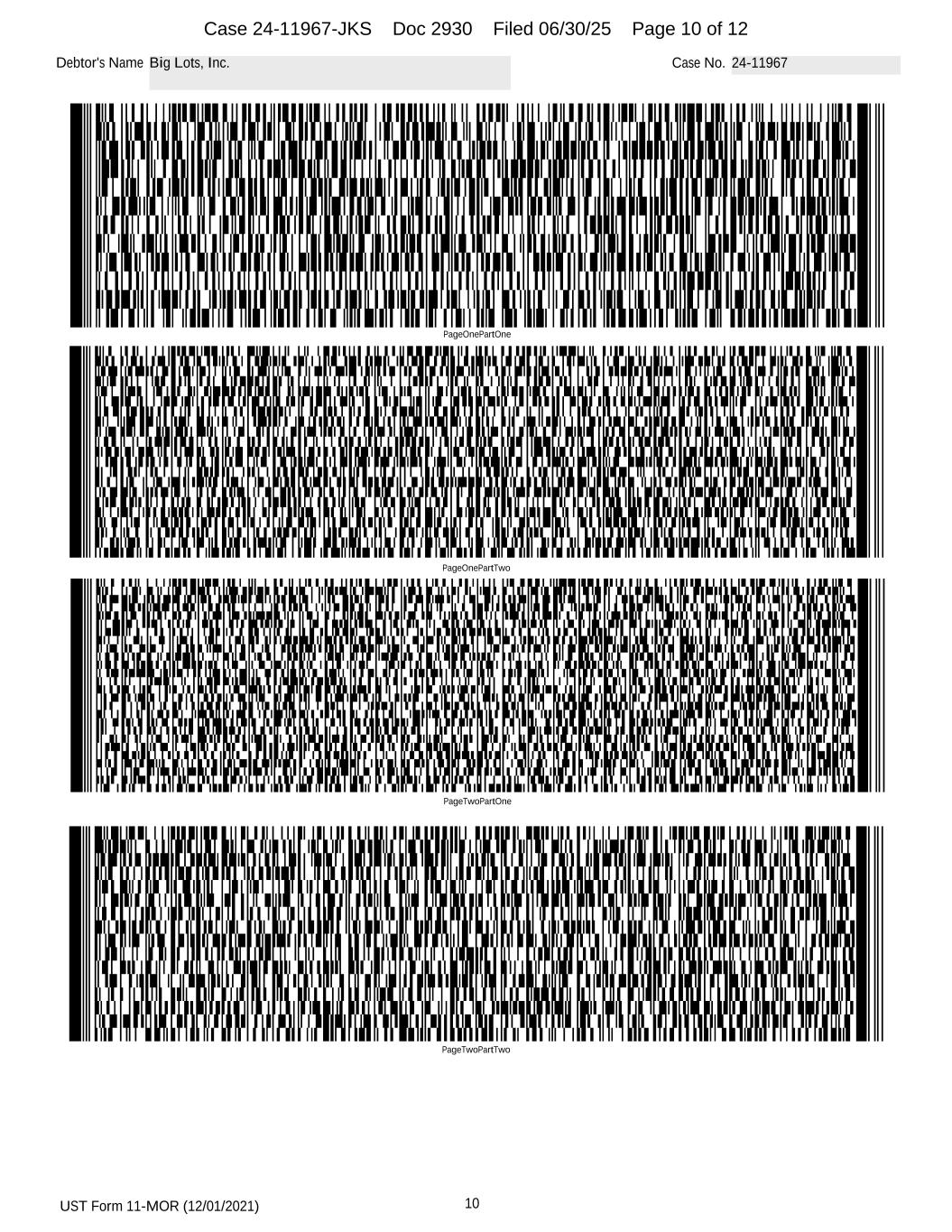 UST Form 11-MOR (12/01/2021) 10 Debtor's Name Big Lots, Inc. Case No. 24-11967 PageOnePartOne PageOnePartTwo PageTwoPartOne PageTwoPartTwo Case 24-11967-JKS Doc 2930 Filed 06/30/25 Page 10 of 12