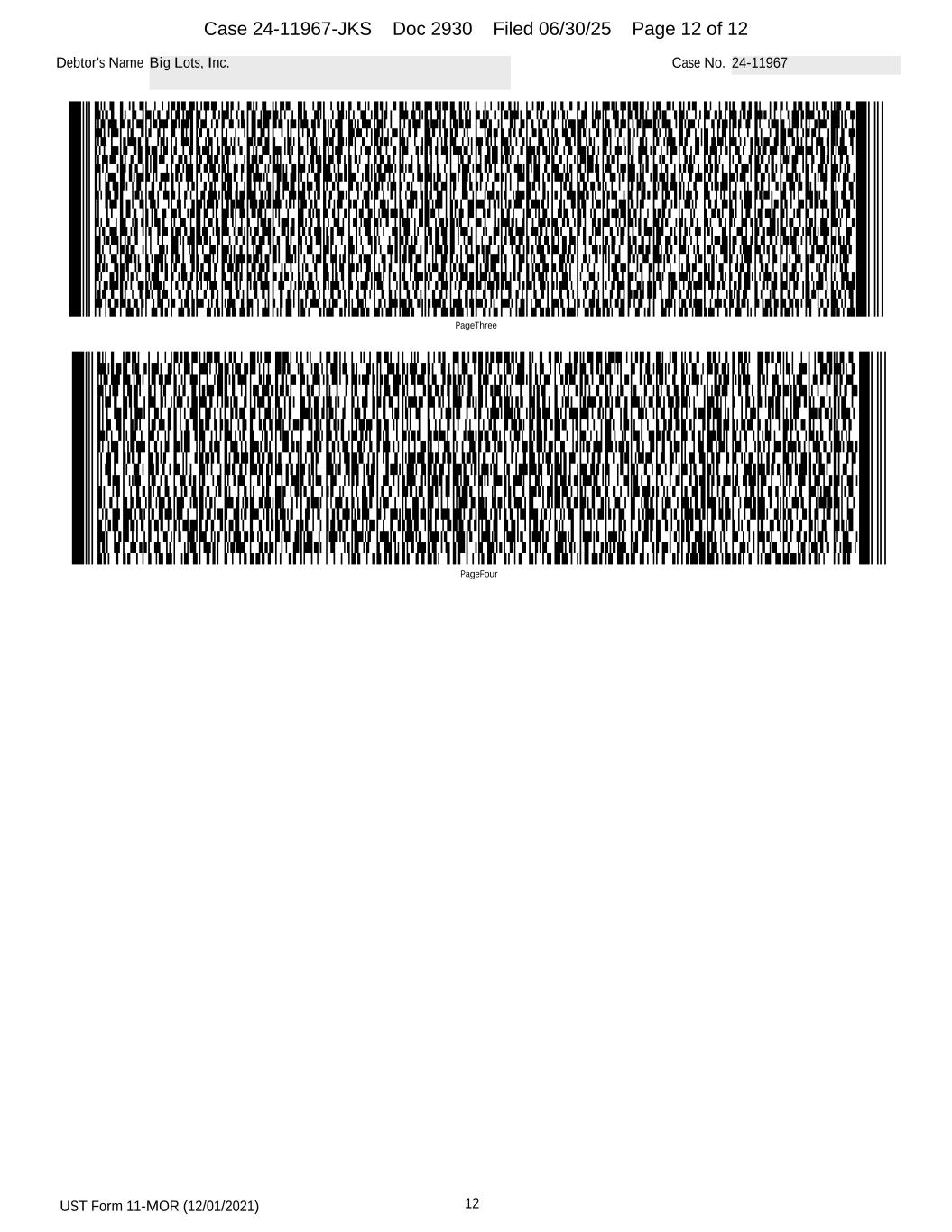 UST Form 11-MOR (12/01/2021) 12 Debtor's Name Big Lots, Inc. Case No. 24-11967 PageFour PageThree Case 24-11967-JKS Doc 2930 Filed 06/30/25 Page 12 of 12