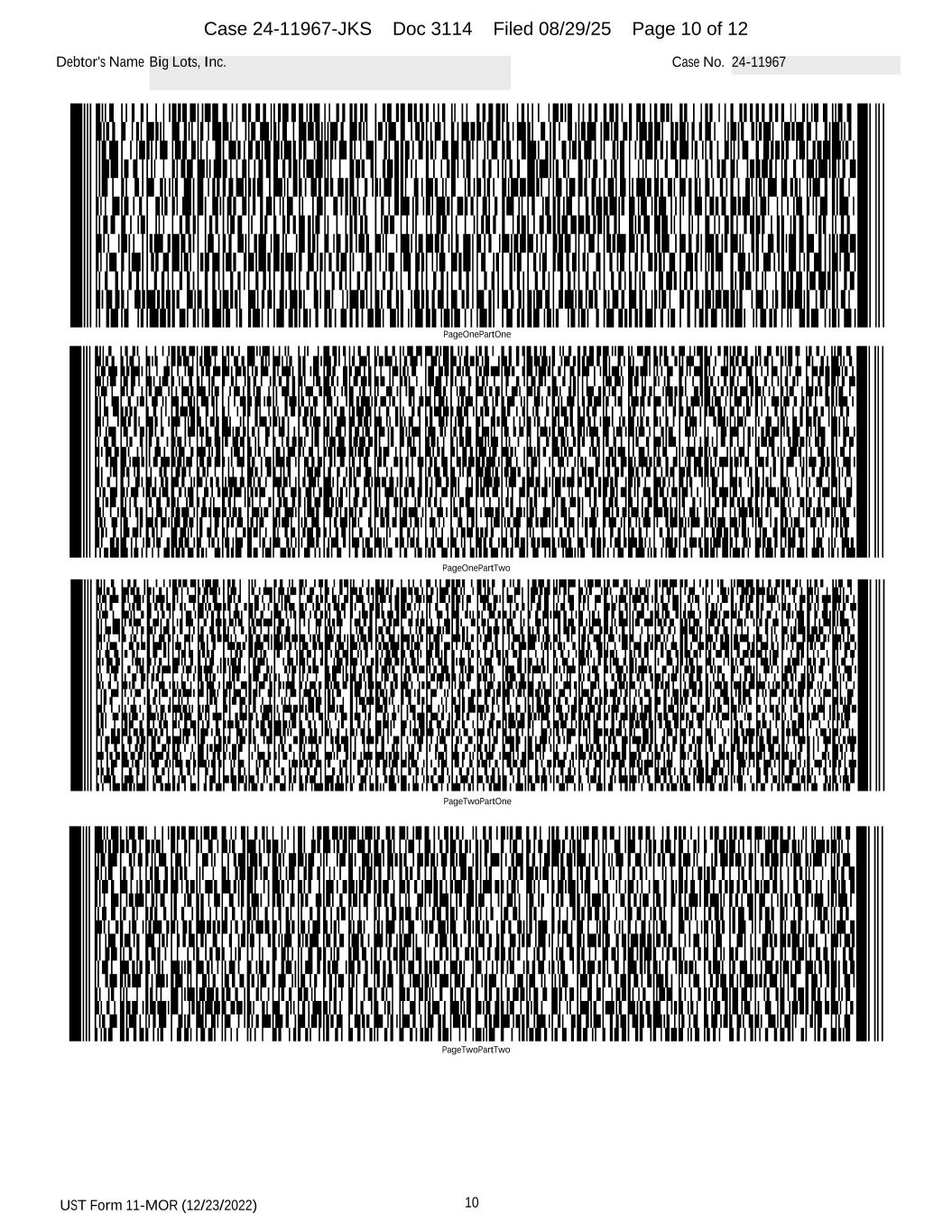 UST Form 11-MOR (12/23/2022) 10 Debtor's Name Big Lots, Inc. Case No. 24-11967 PageOnePartOne PageOnePartTwo PageTwoPartOne PageTwoPartTwo Case 24-11967-JKS Doc 3114 Filed 08/29/25 Page 10 of 12