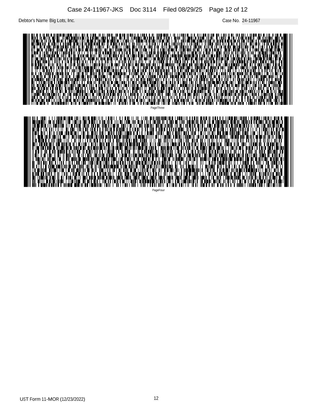 UST Form 11-MOR (12/23/2022) 12 Debtor's Name Big Lots, Inc. Case No. 24-11967 PageFour PageThree Case 24-11967-JKS Doc 3114 Filed 08/29/25 Page 12 of 12