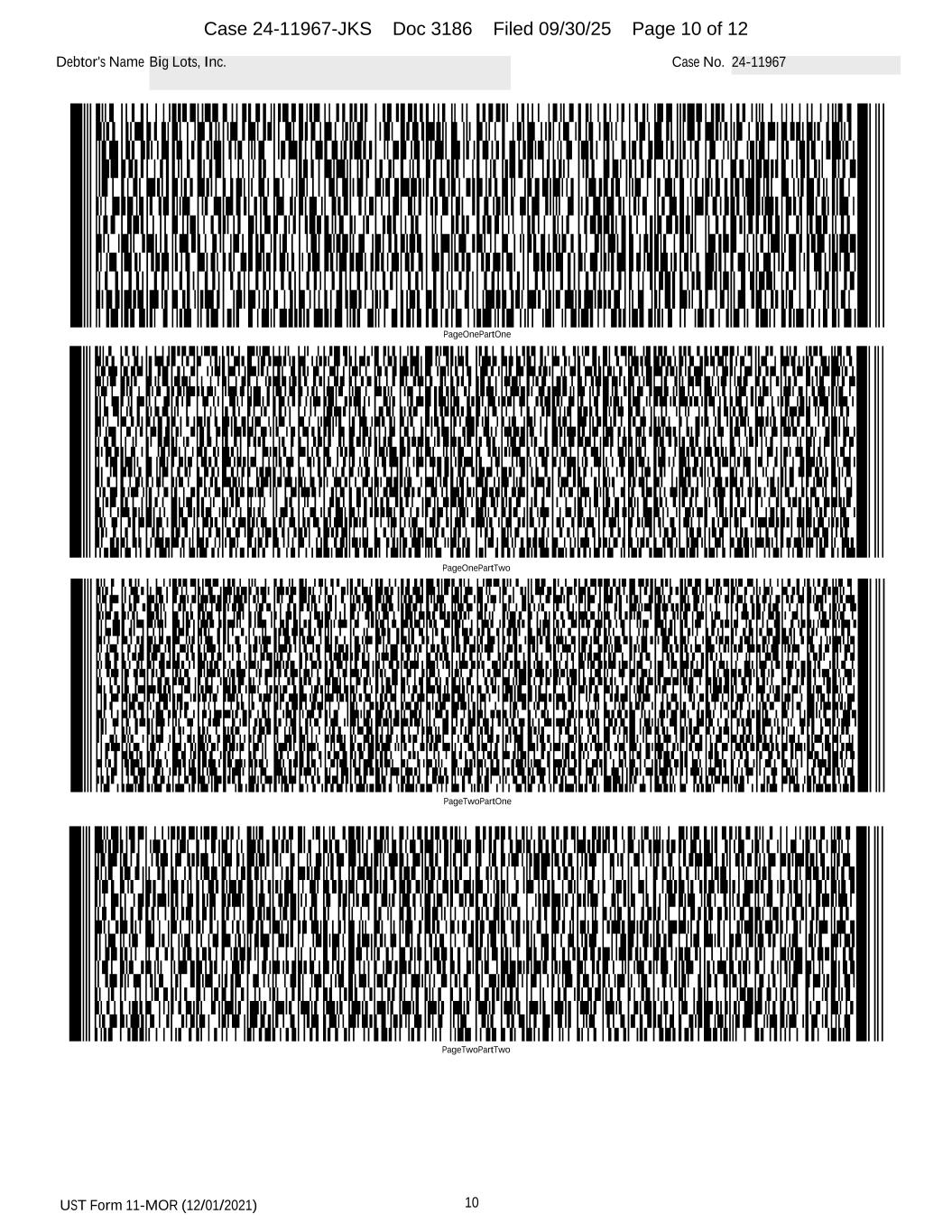 UST Form 11-MOR (12/01/2021) 10 Debtor's Name Big Lots, Inc. Case No. 24-11967 PageOnePartOne PageOnePartTwo PageTwoPartOne PageTwoPartTwo Case 24-11967-JKS Doc 3186 Filed 09/30/25 Page 10 of 12