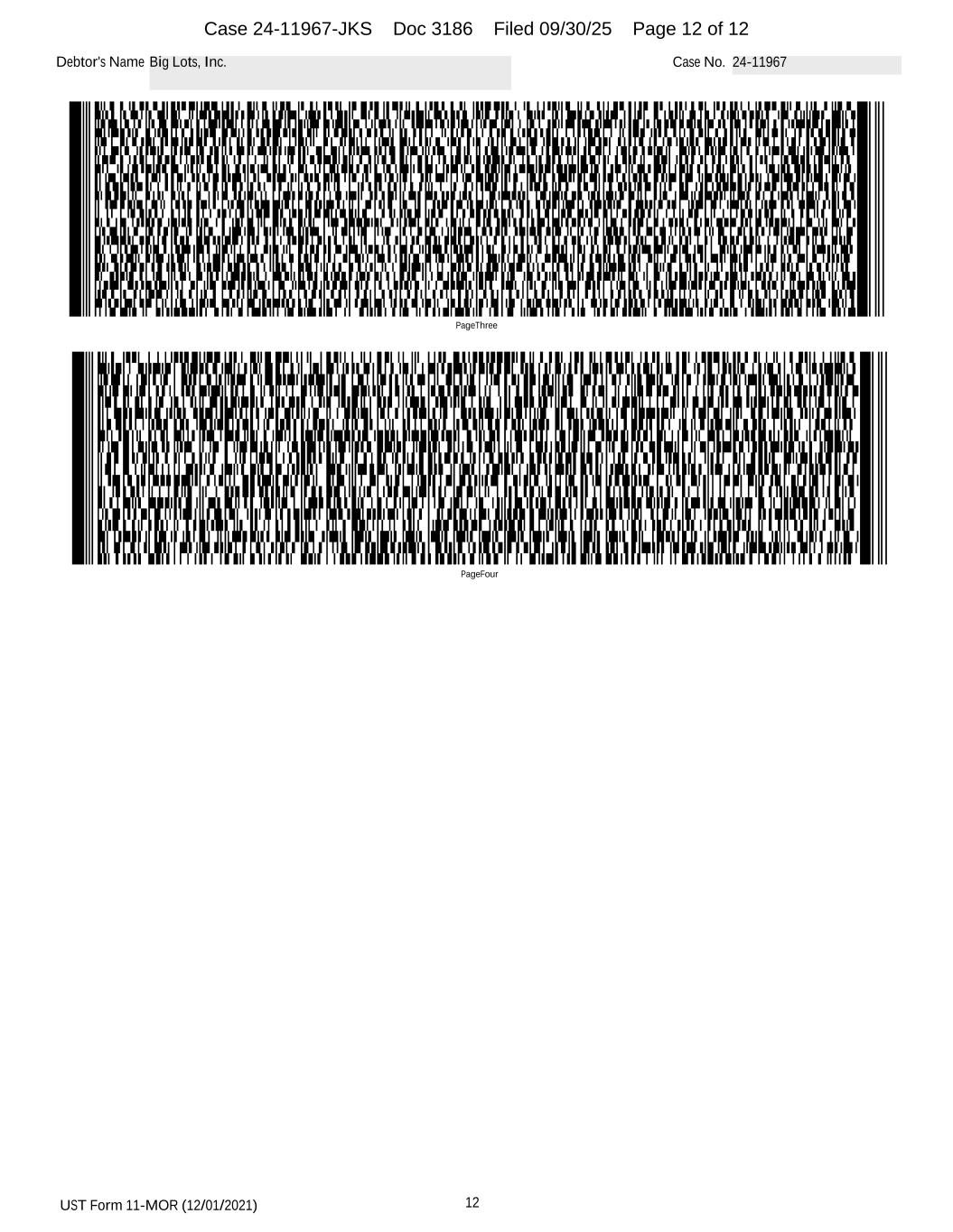 UST Form 11-MOR (12/01/2021) 12 Debtor's Name Big Lots, Inc. Case No. 24-11967 PageFour PageThree Case 24-11967-JKS Doc 3186 Filed 09/30/25 Page 12 of 12