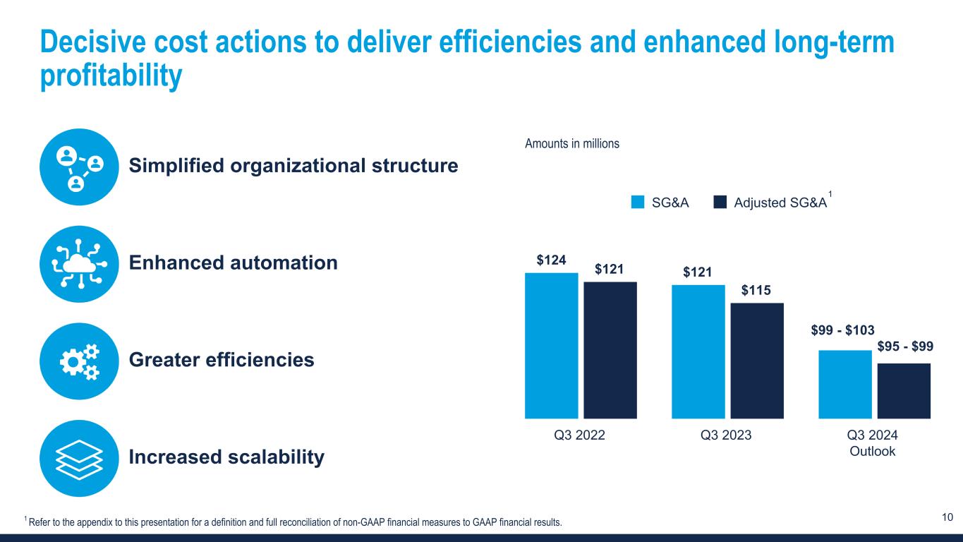 10 Decisive cost actions to deliver efficiencies and enhanced long-term profitability $124 $121$121 $115 SG&A Adjusted SG&A Q3 2022 Q3 2023 Q3 2024 Outlook Amounts in millions Simplified organizational structure Enhanced automation Greater efficiencies Increased scalability $99 - $103 $95 - $99 1 1 Refer to the appendix to this presentation for a definition and full reconciliation of non-GAAP financial measures to GAAP financial results.