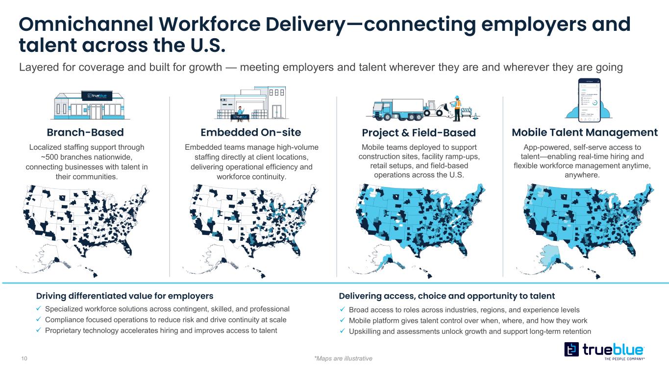 9 Strong position to capitalize on growth opportunities People 4,000+ talented, dedicated and mission driven people Experience 35+ years of industry expertise and deep client relationships Technology Sophisticated technology providing a differentiated user experience and enabling sales Market Presence Significant scale and expansive market presence Tremendous strengths and assets to drive our success, capitalizing on growth opportunities, enhancing shareholder value and advancing our mission to connect people and work