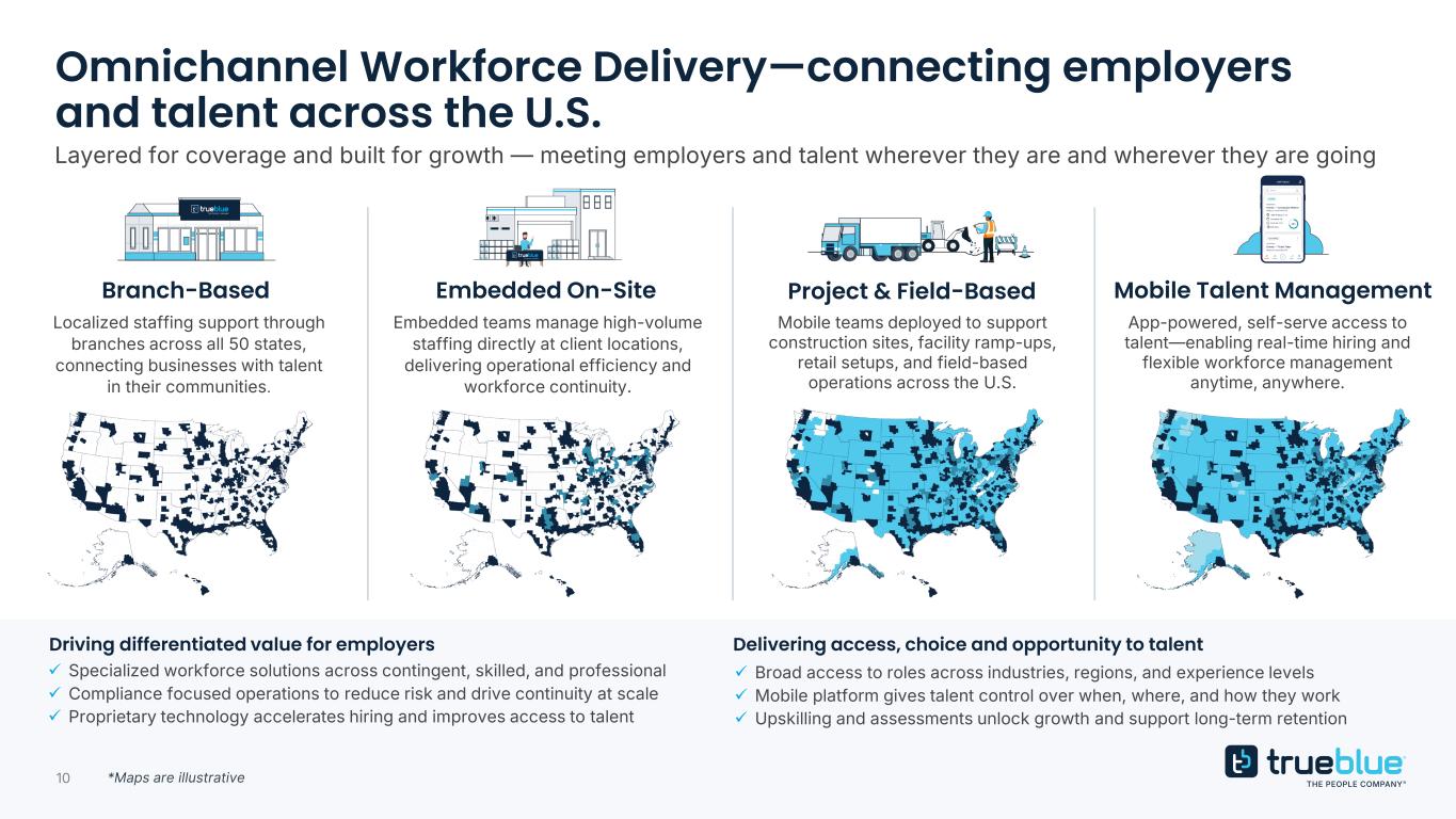 9 Strong position to capitalize on growth opportunities People 3,000+ talented, dedicated and mission driven people Experience 35+ years of industry expertise and deep client relationships Technology Sophisticated technology providing a differentiated user experience and enabling sales Market Presence Significant scale and expansive market presence Tremendous strengths and assets to drive our success, capitalizing on growth opportunities, enhancing shareholder value and advancing our mission to connect people and work