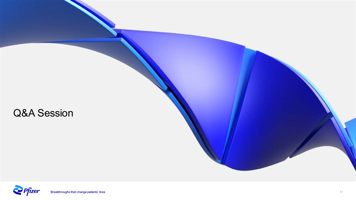 Key Takeaways Key Takeaways ü Deploying Pfizer's financial resources to advance the battle against cancer, a leading cause of death worldwide with a significant impact on public health ü Accelerating the next-generation of cancer treatments through the combination of Seagen's ADC technology with the scale and strength of Pfizer's capabilities and expertise ü Positioning Pfizer at the forefront of innovative cancer care and strongly complements our existing Oncology portfolio ü Seagen expects to generate approximately $2.2 billion of revenue in 2023, representing 12% growth year over year ü Subject to clinical trial and regulatory success, Pfizer believes Seagen could contribute more than $10 billion in 2030 risk-adjusted revenues, with potential for significant growth beyond 2030. 16