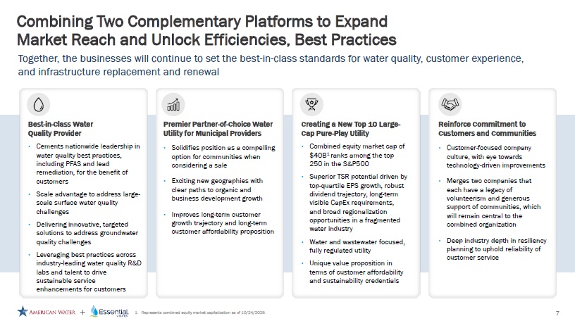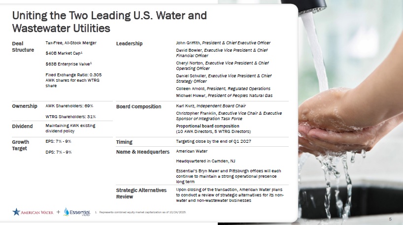 American Water & Essential Utilities Merger Uniting Two of the Nation’s Premier Water Utilities to Deliver Improved Scale and Long - Term Value OCTOBER 27, 2025