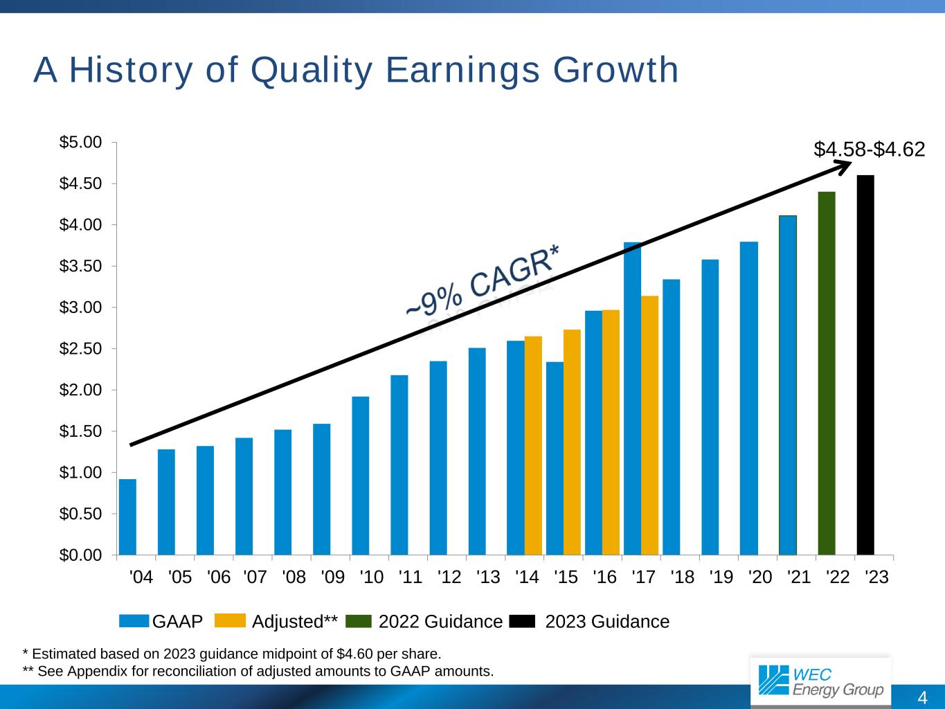 3 The Premier Energy Company in America’s Heartland  $29.6 billion market cap*  4.6 million retail customers  60% ownership of American Transmission Company  $40.8 billion of assets * As of Dec. 31, 2022